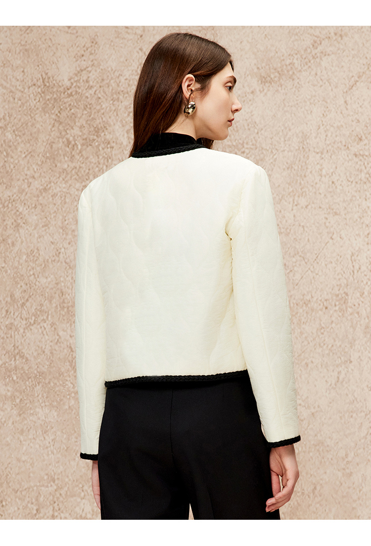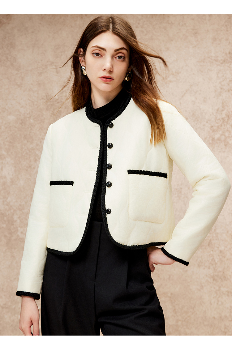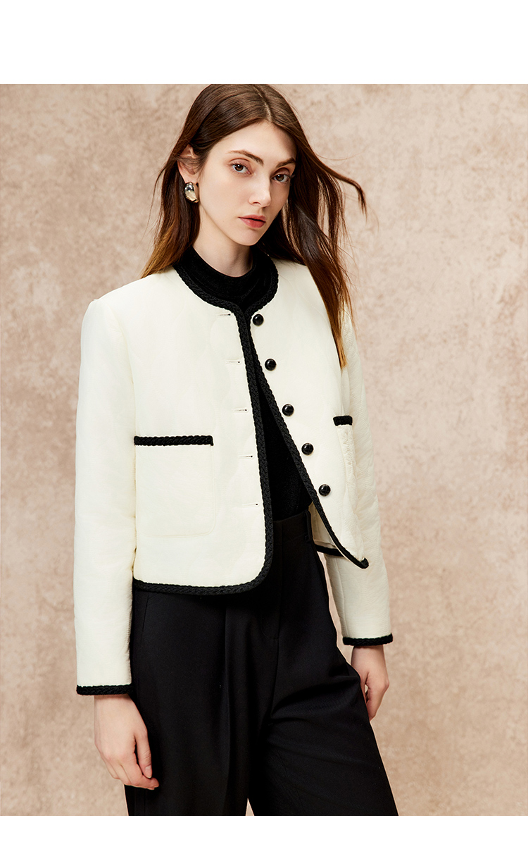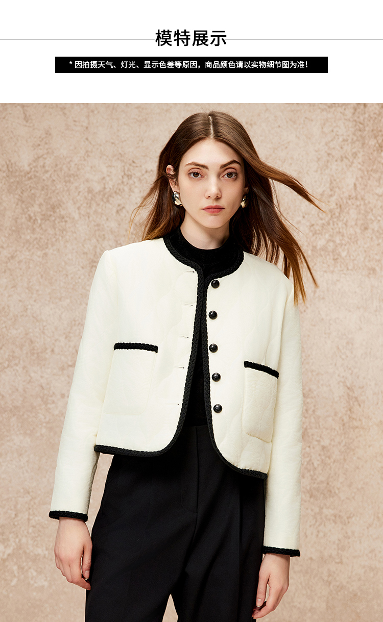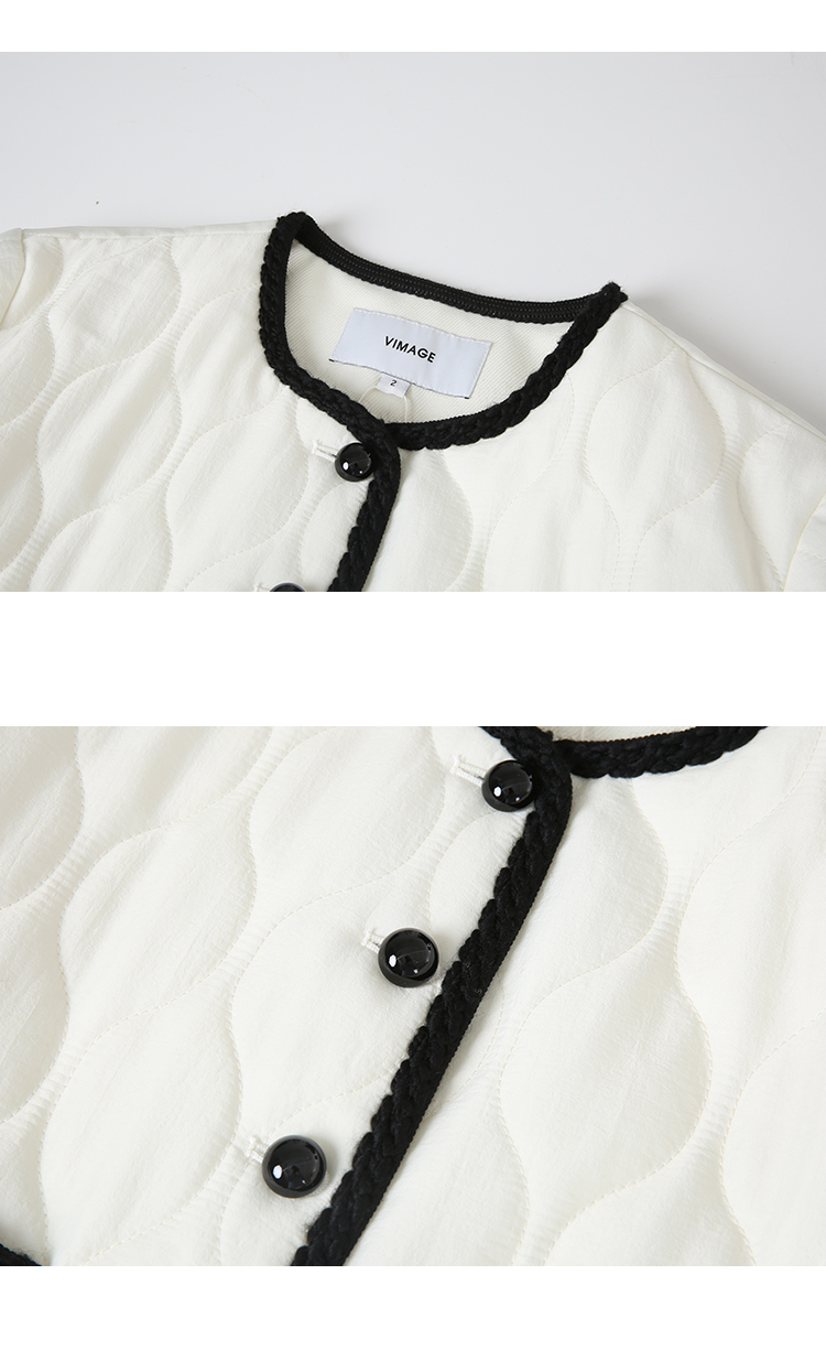 VIMAGE纬漫纪气质高级圆领撞色直筒显瘦外套冬新款V2210801