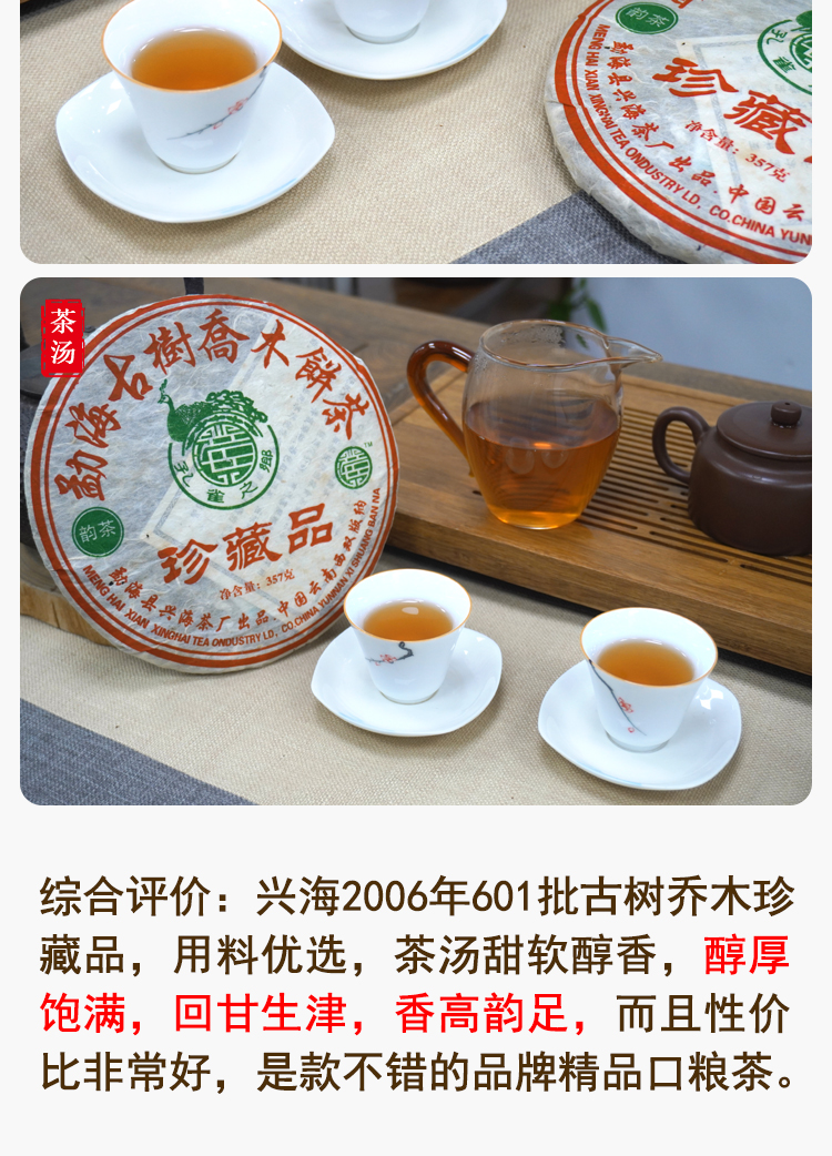 【品质好茶】2006年601批次兴海茶厂勐海乔木珍藏品 普洱茶老生茶 轻烟香好回甘 干仓真品高性价比好茶