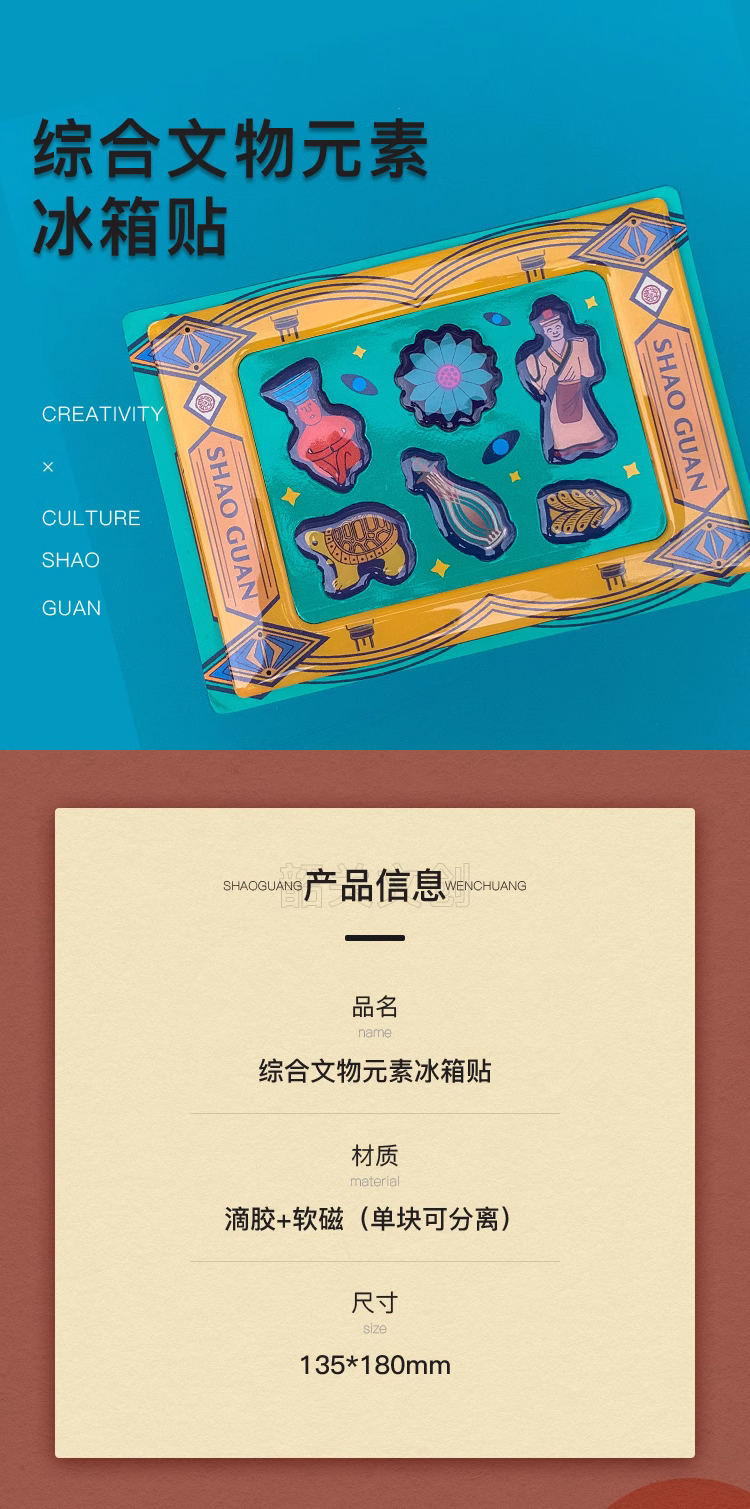 【韶关市博物馆文创】国潮冰箱贴 软磁铁硅胶冰箱卡通装饰饰品
