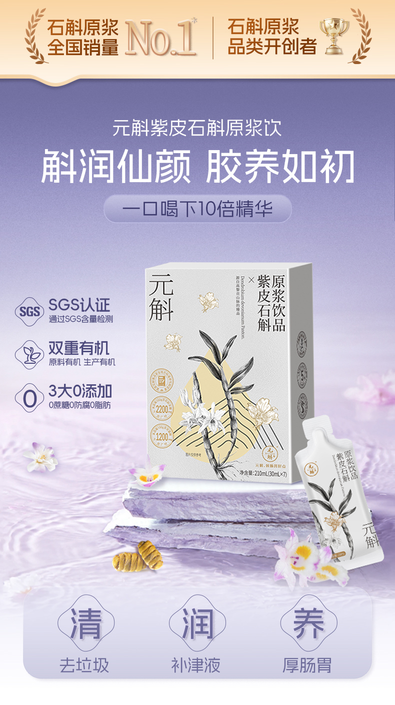 高黎贡山紫皮石斛原浆 润养肠胃 含浆量高达90% 30ml*7袋/盒