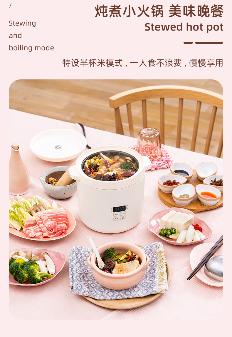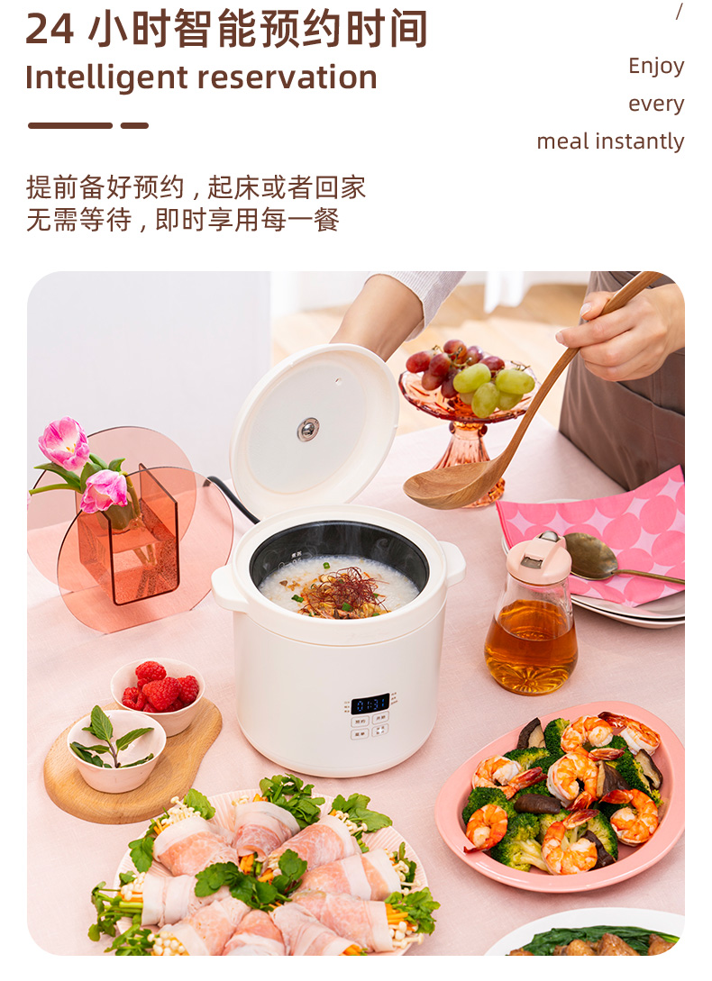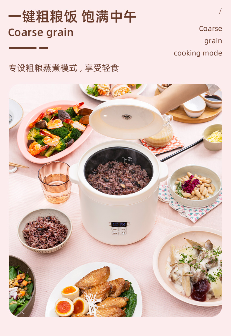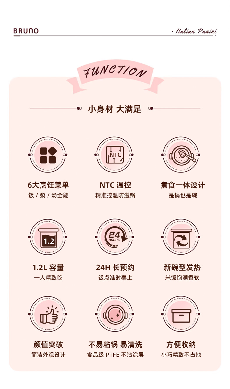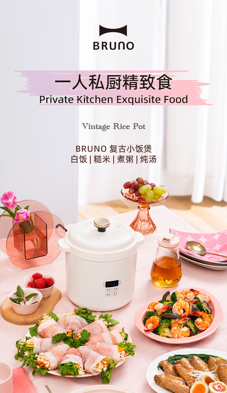 日本BRUNO博鲁诺第二代迷你电饭煲1.2L-粉BOE127-PK