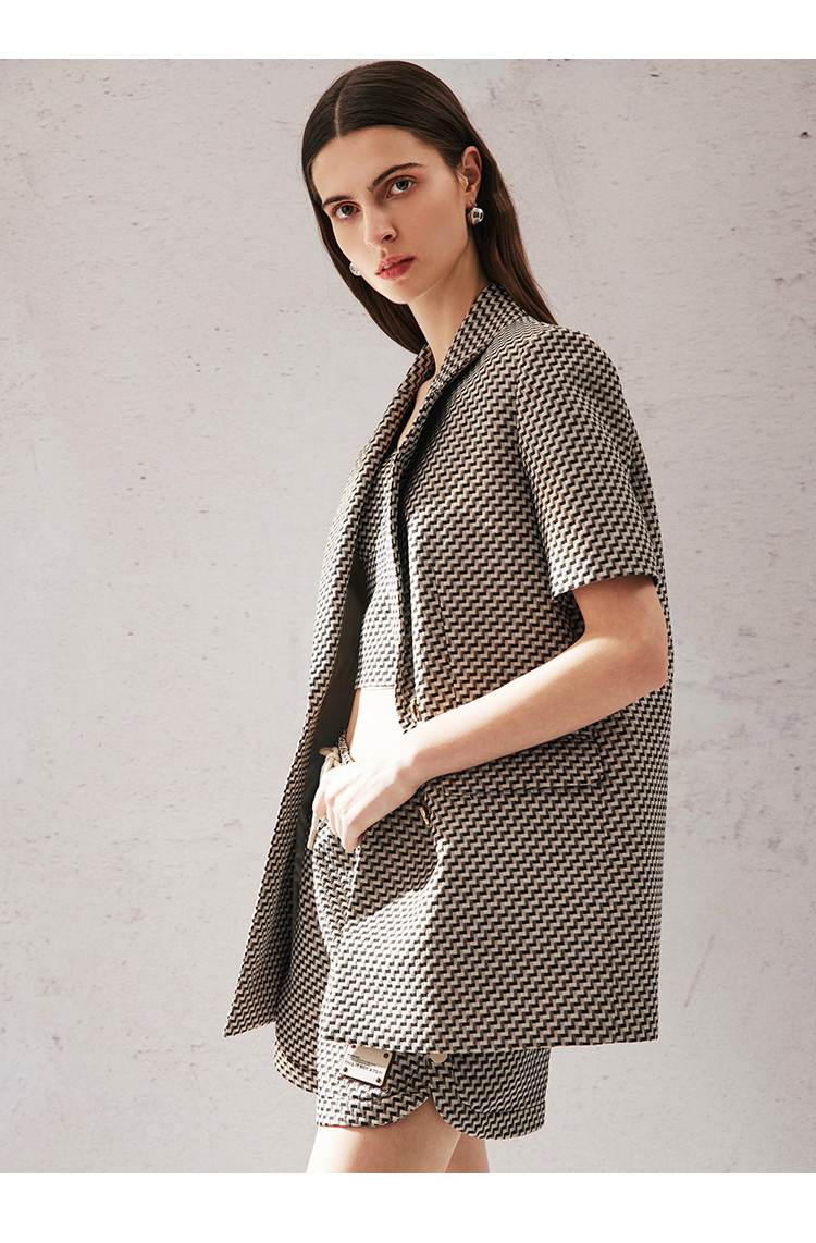 VIMAGE纬漫纪春季新款印花修身时尚外套V2103721