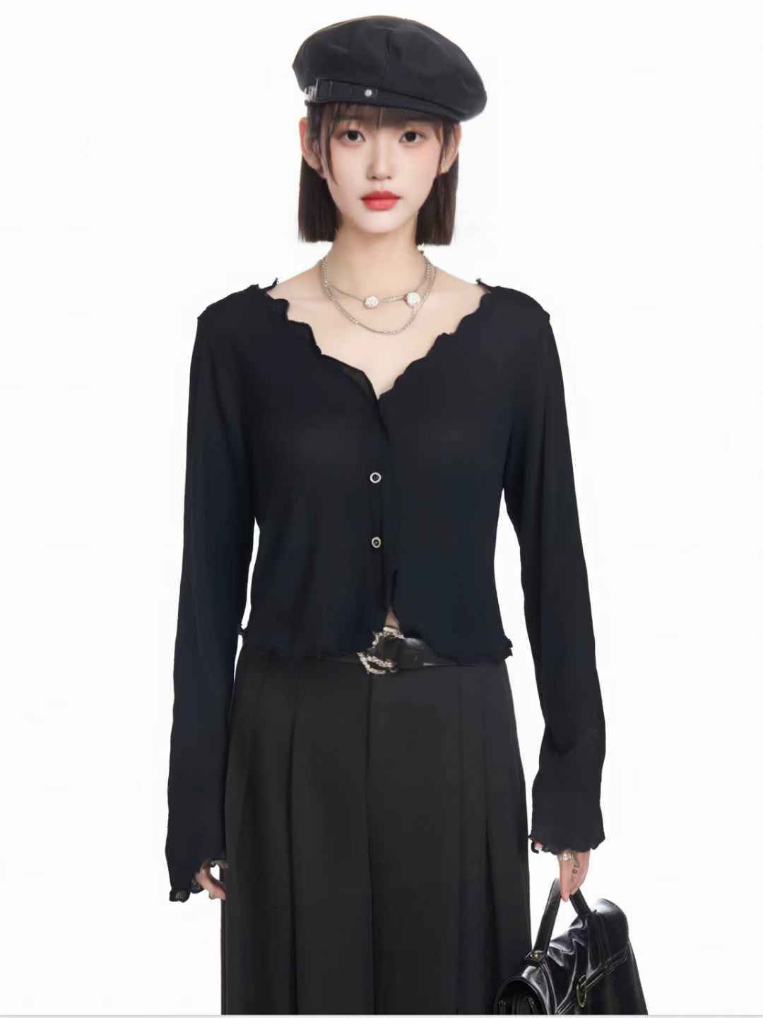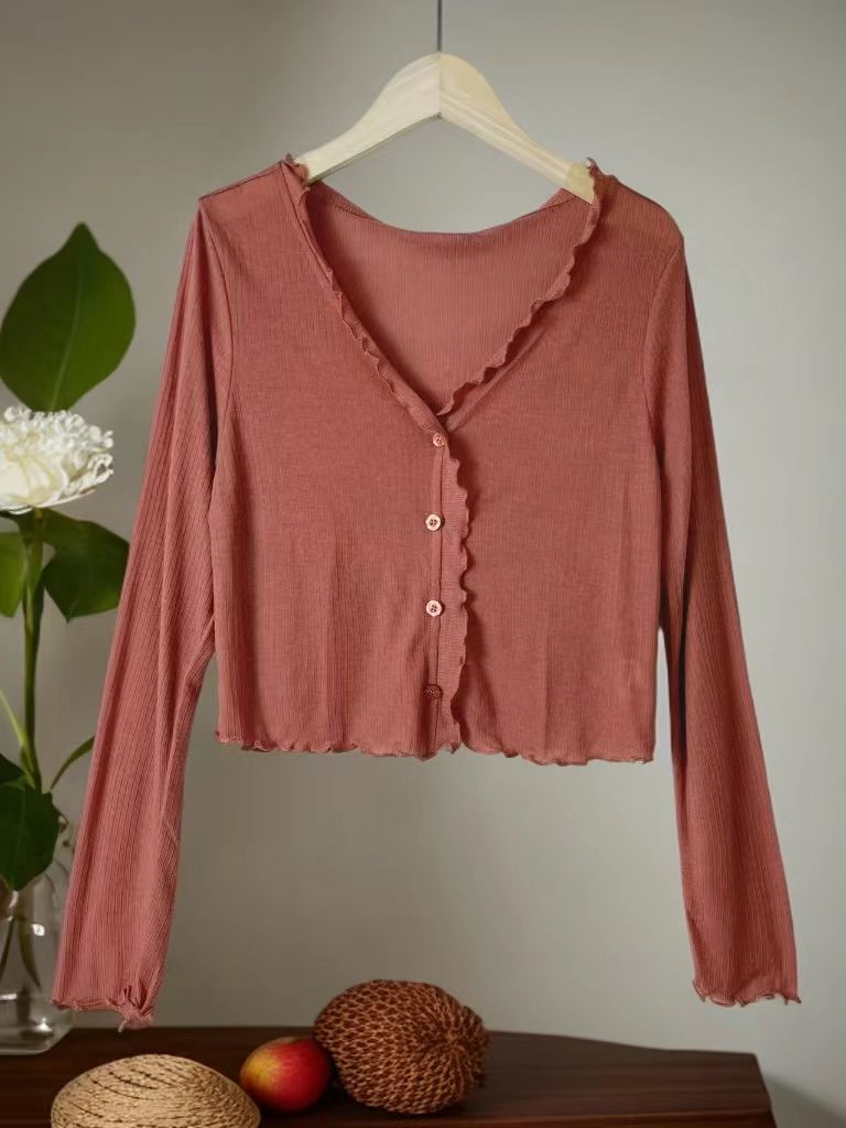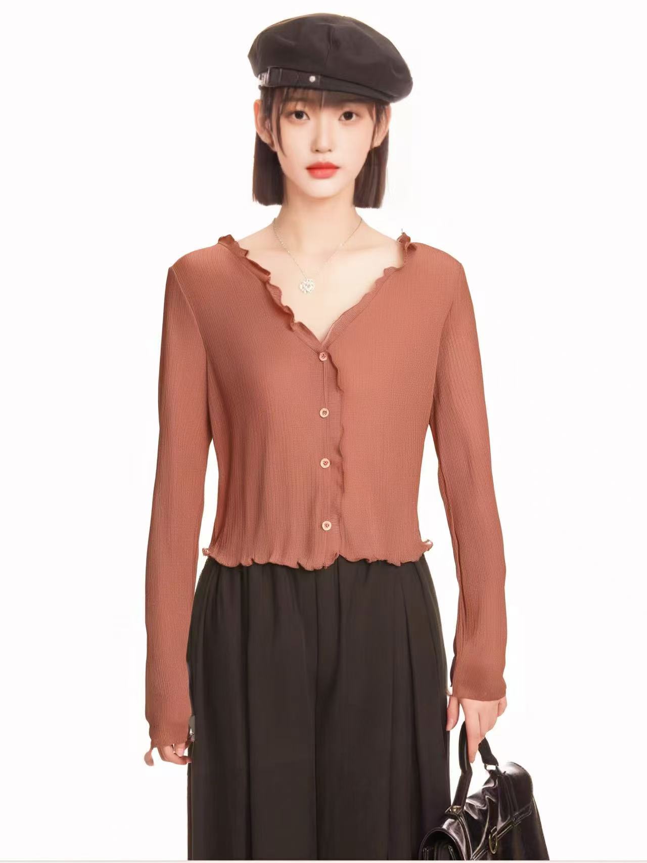 【诗铭洛可】W1030木耳边单件薄款小衫外搭衫B5-3
