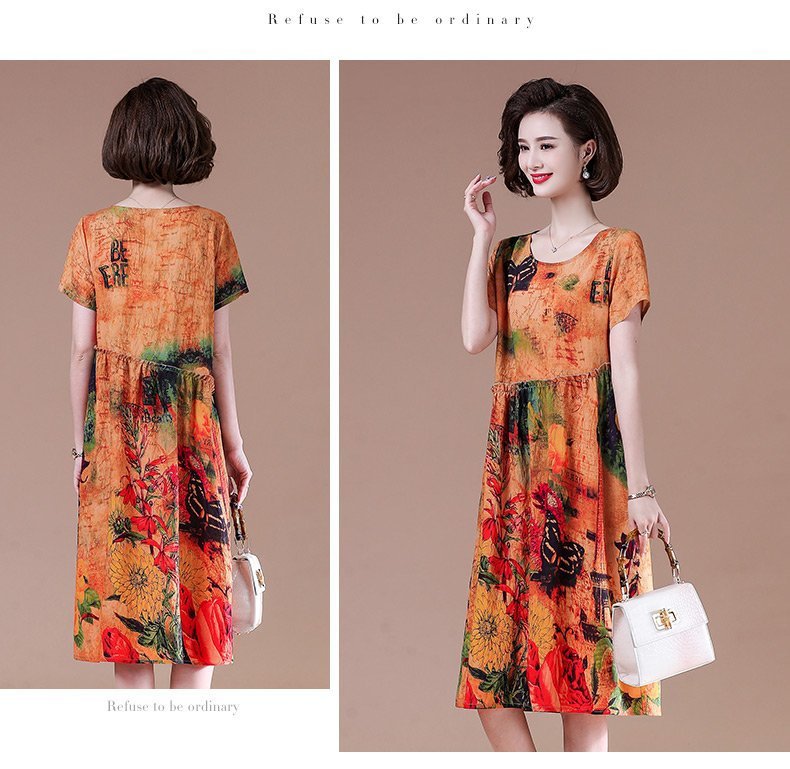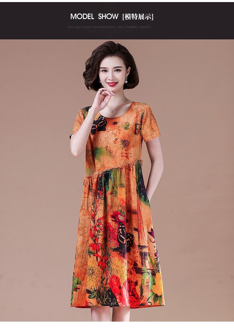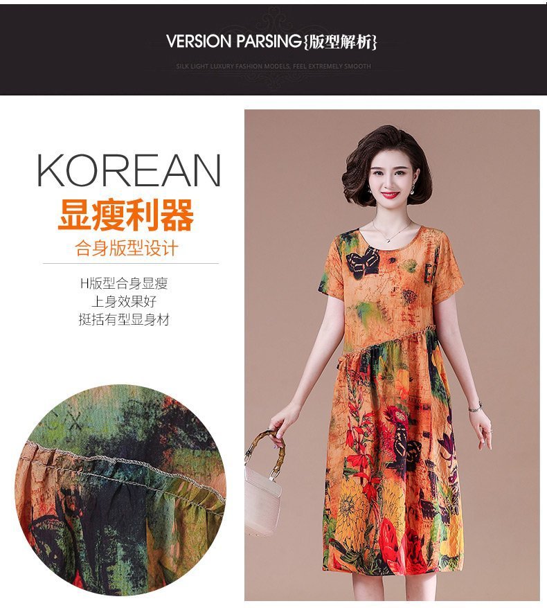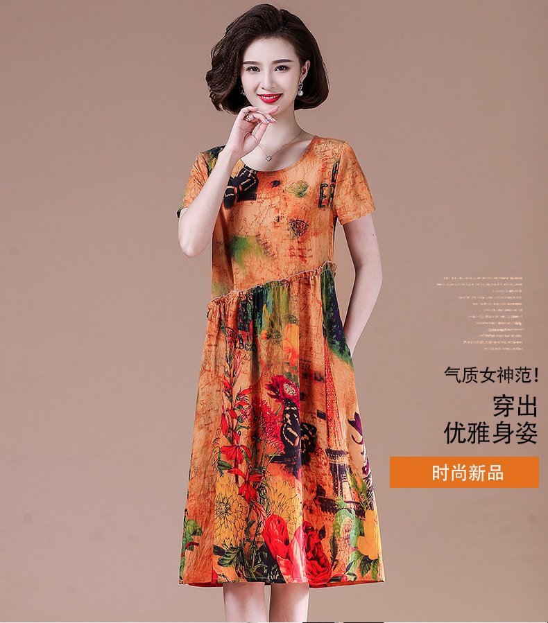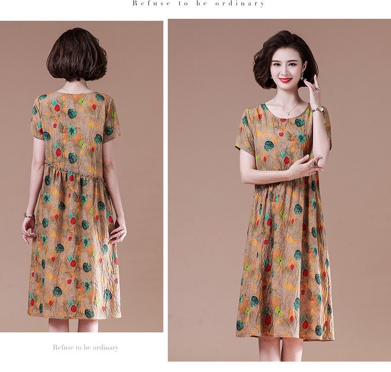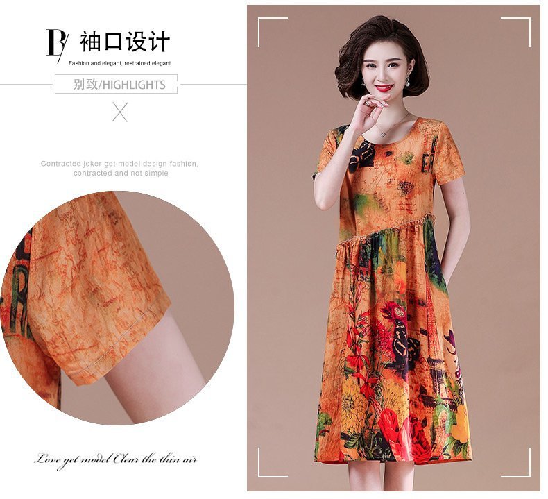 MQ-3164-0185夏季新款宽松大码复古印花休闲短袖连衣裙YY