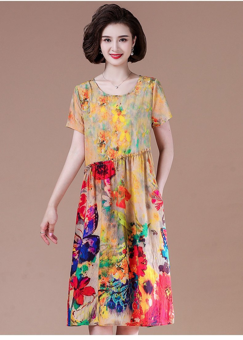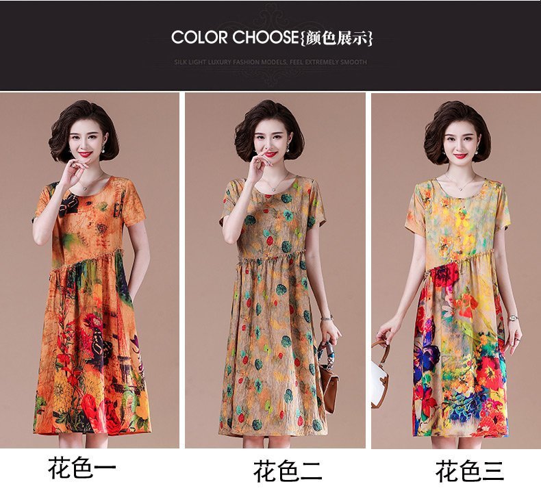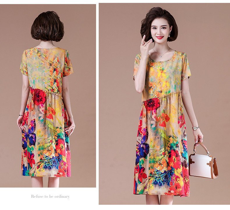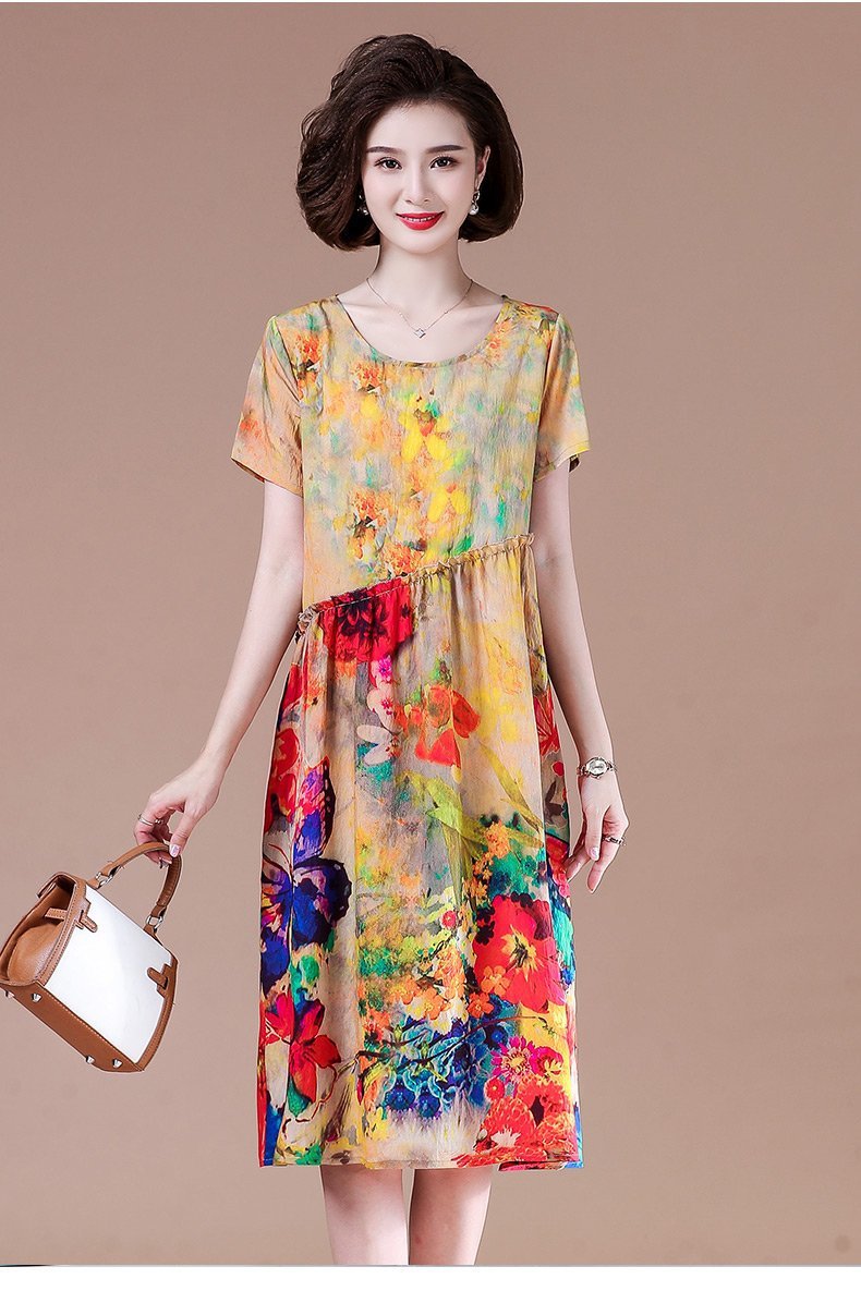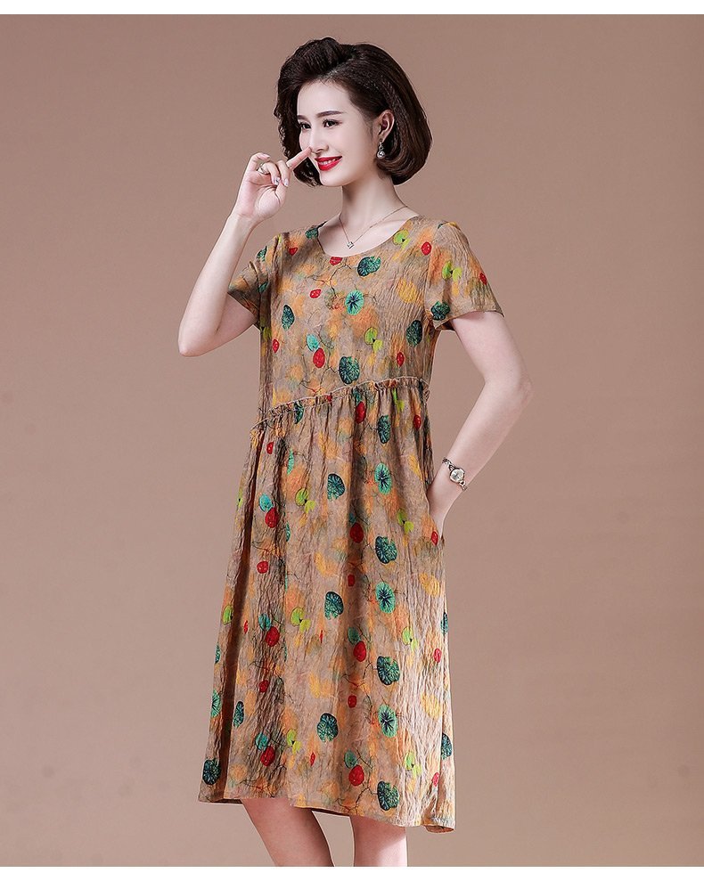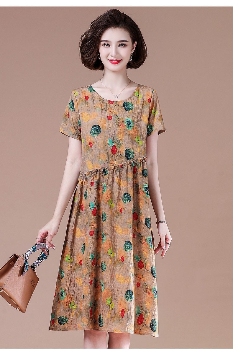 MQ-3164-0185夏季新款宽松大码复古印花休闲短袖连衣裙YY