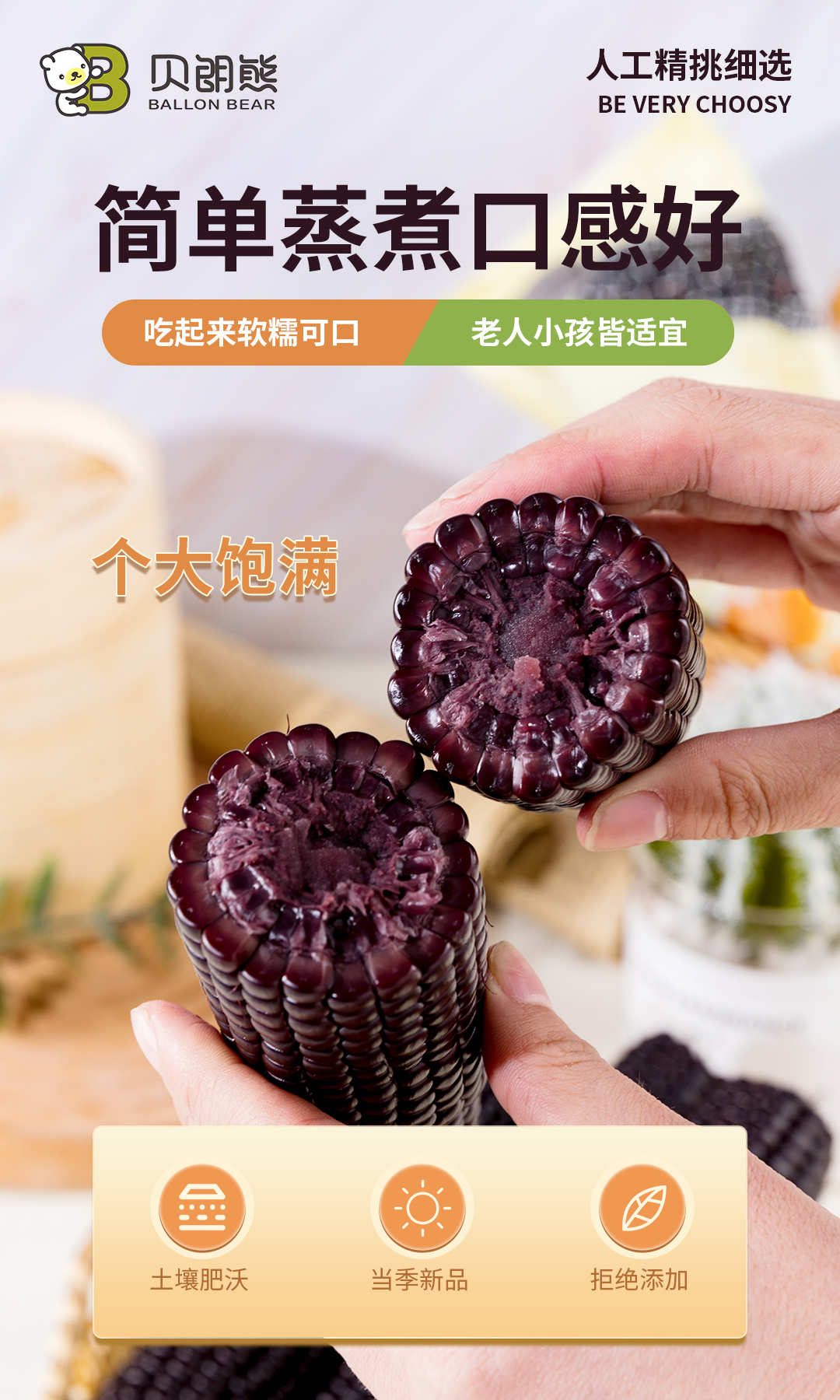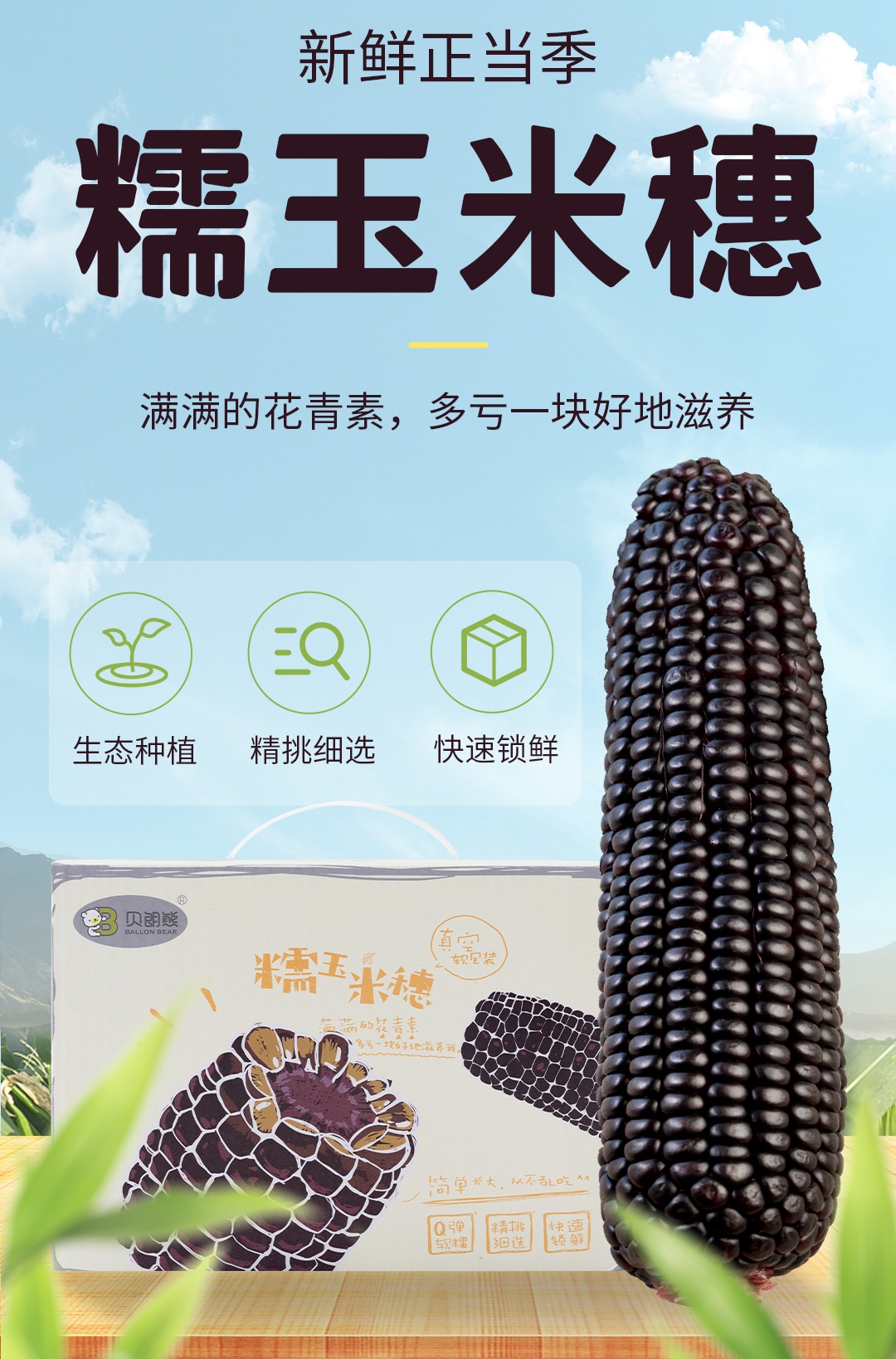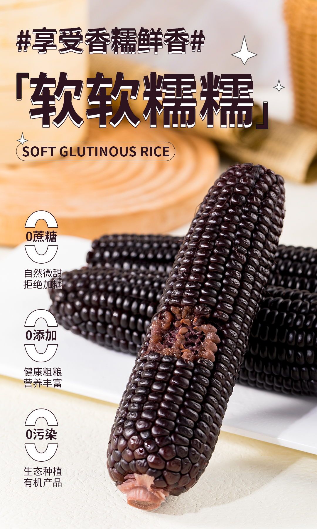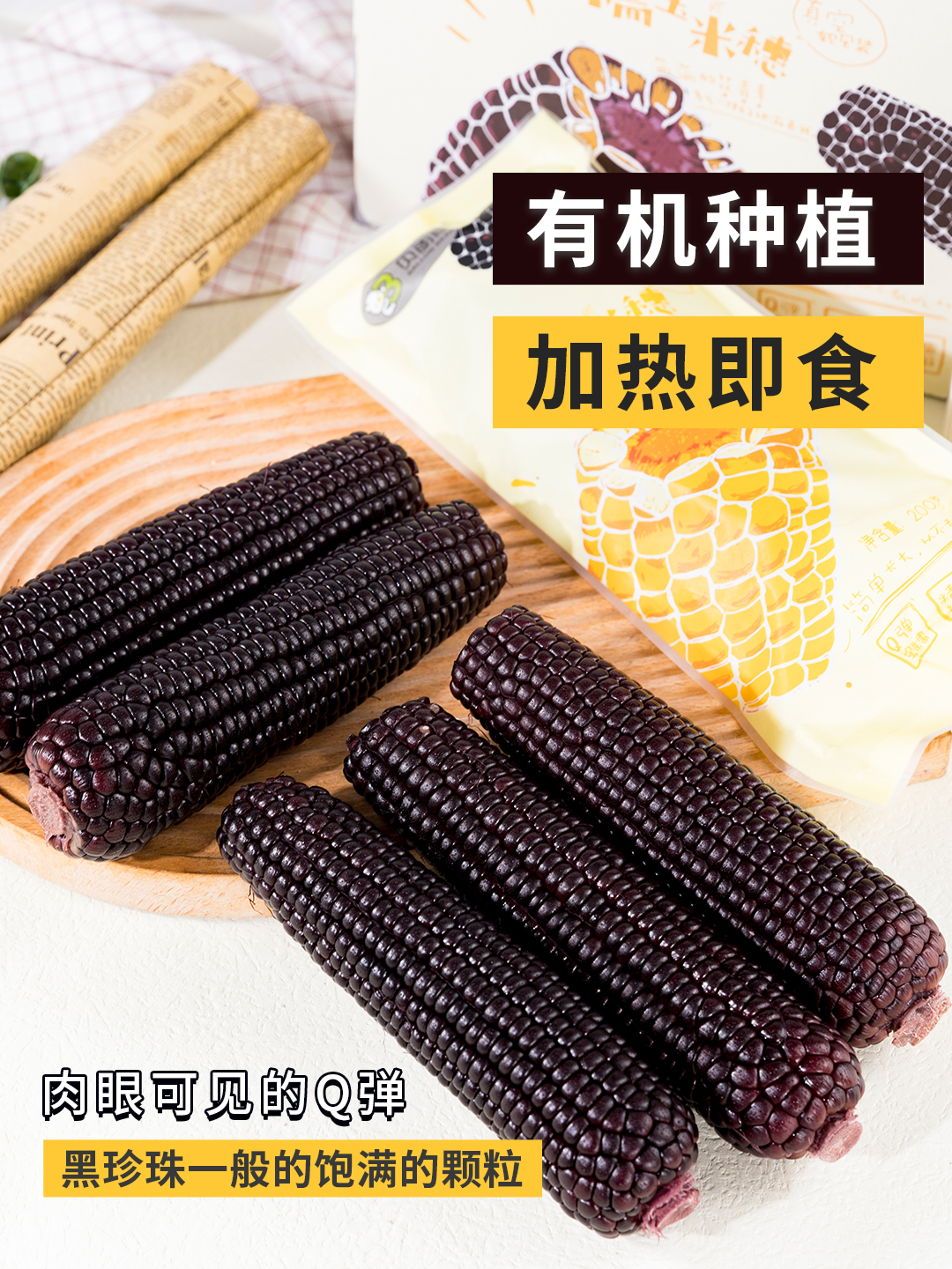 【果蔬精选】有机黑甜糯玉米 有机认证 软糯香甜 原汁原味 新鲜甜黏玉米 杂粮粗粮 早餐烧烤食材