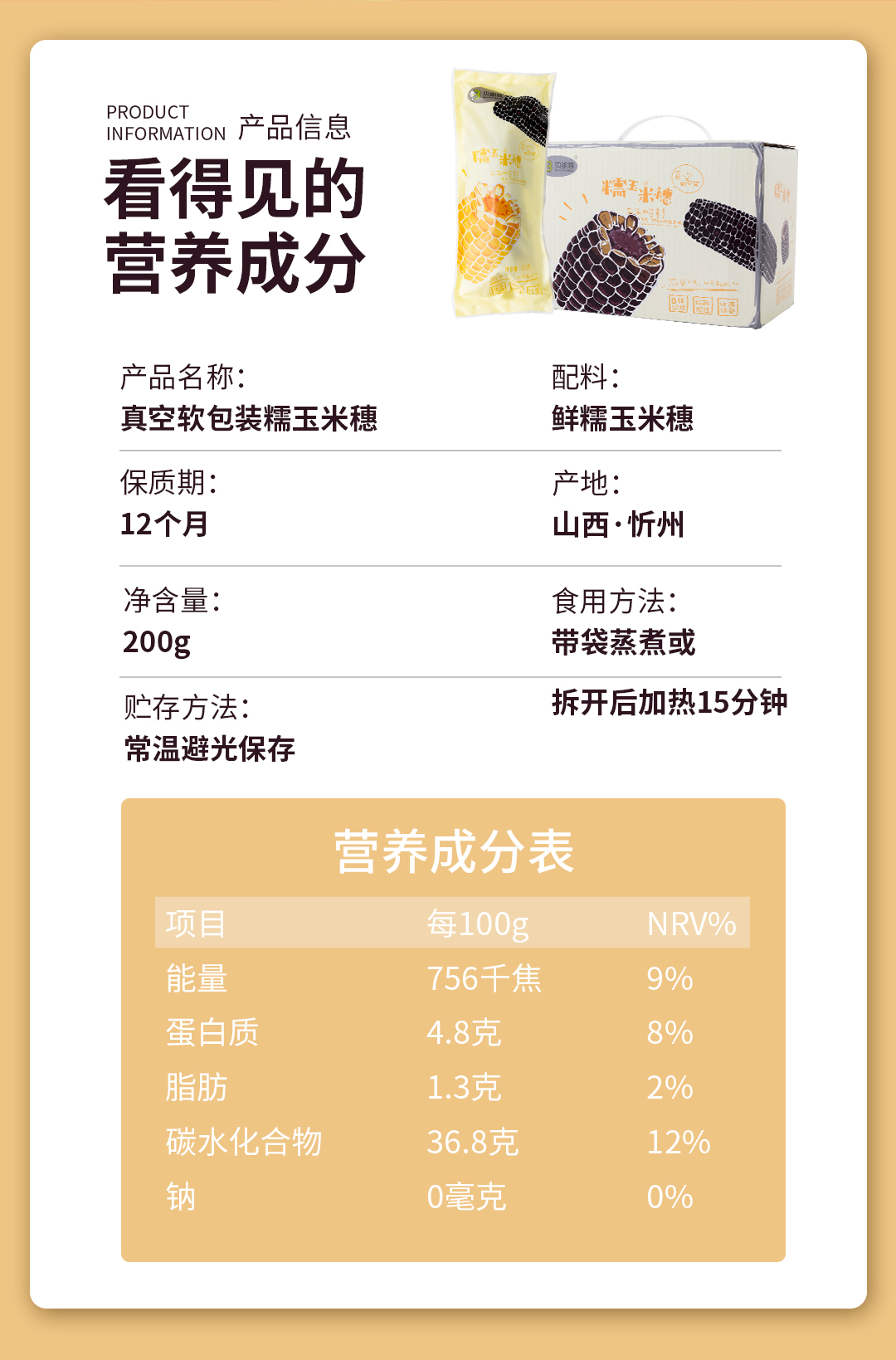 品名:有机黑甜糯玉米 规格:有机玉米约200g/根*8根礼盒装;拍几份发几个包裹,不一定能同时到达,请耐心等待 发货地/产地:山西忻州 包装方式:袋装+礼盒装 物流信息:默认中通/韵达快递,不支持指定快递 发货区域:新疆、西藏、海南不发; 物流详情:周六、周日及节假日除外,正常48小时内发货,到货时间约为2~5天,请耐心等待 售后说明:收到货后有质量问题,在24小时内都可以拍照(坏品+快递单面箱子一起拍)上传,申请按坏品比例理赔或联系客服,谢谢理解; |