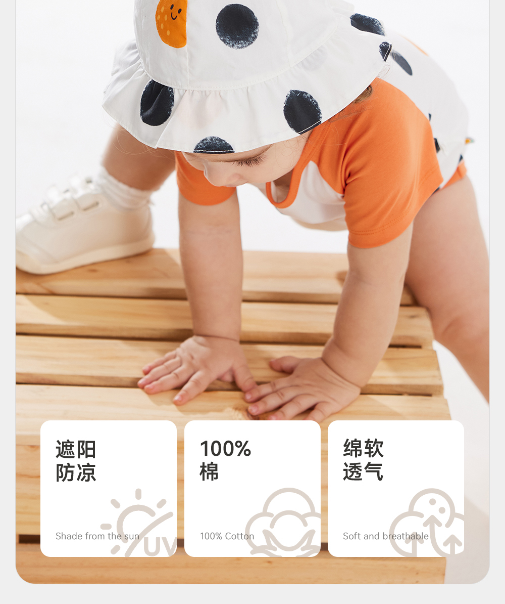 英氏婴童帽子夏季宝宝户外防晒透气渔夫帽纯棉新款遮阳帽