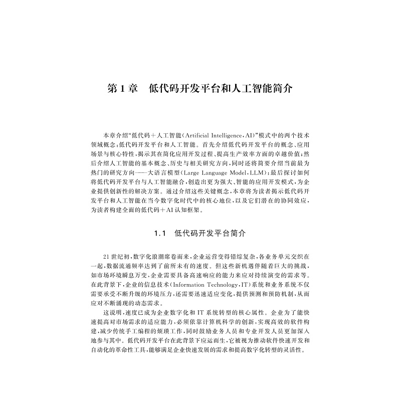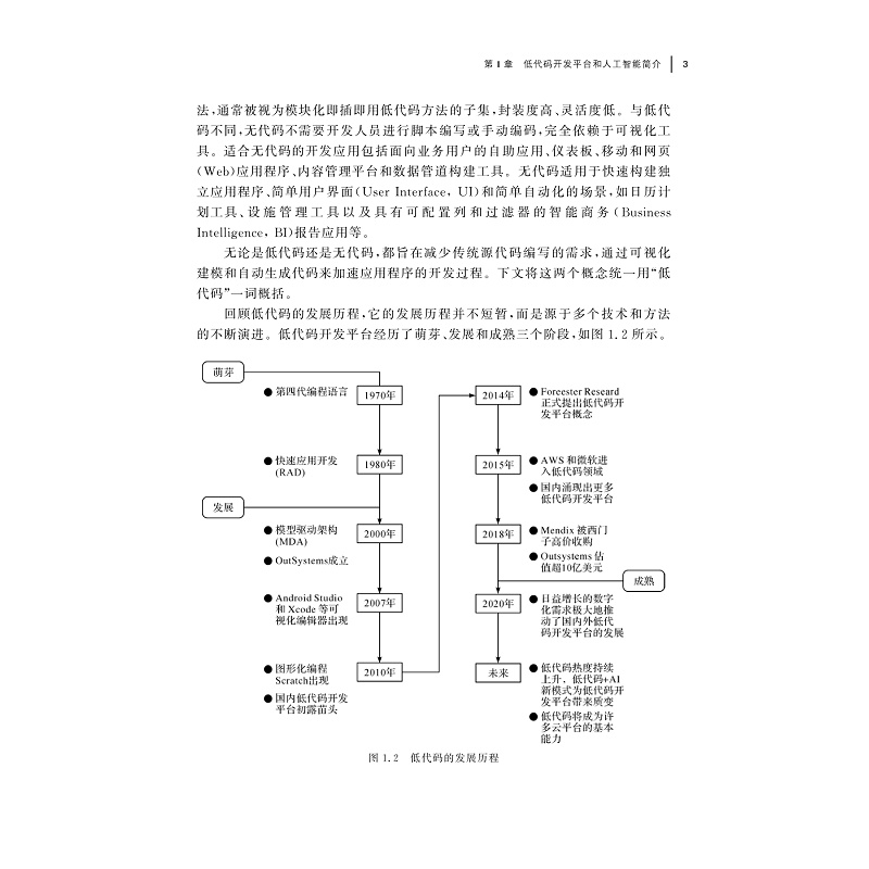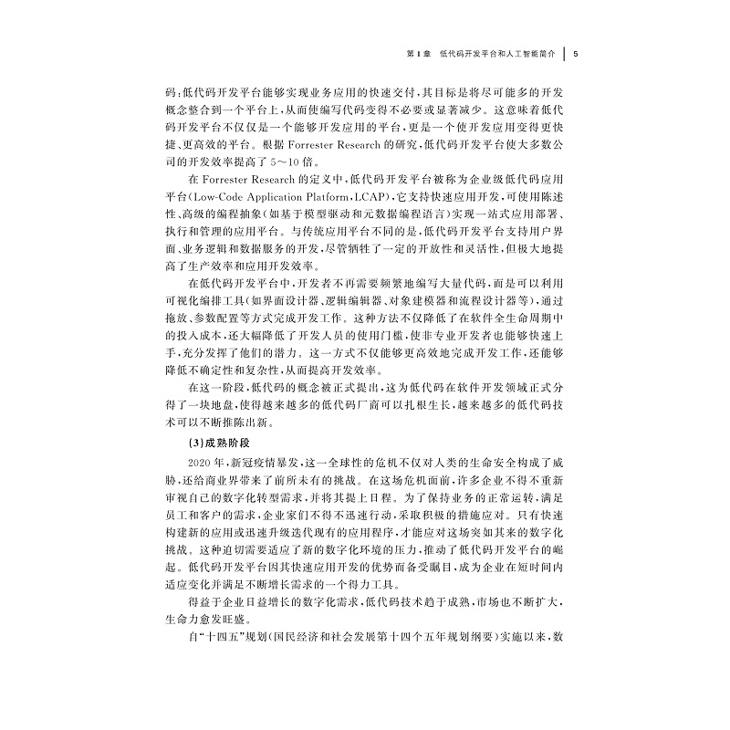 随着软件开发领域的不断演进,对智能化和确定性的需求日益凸显。为满足这一迫切需求,本书将焦点聚集在低代码与人工智能的融合上,提出了低代码+AI模式,旨在为软件开发引入全新的范式。通过深入探讨低代码平台和人工智能的发展历程,本书致力于引导读者进入结合人工智能技术的低代码软件开发新时代。本书系统整合了低代码和人工智能领域的知识,提出了创新性的低代码+AI模式。通过详细讨论各个环节中AI的应用,为软件开发领域引入更高效、更可靠的新范式。这一新兴范式在学术研究和实际应用中具有重要意义,为读者提供深刻认识和实际指导。本书主要面向软件开发领域的专业人士、学生以及对低代码和人工智能结合应用感兴趣的科技爱好者。