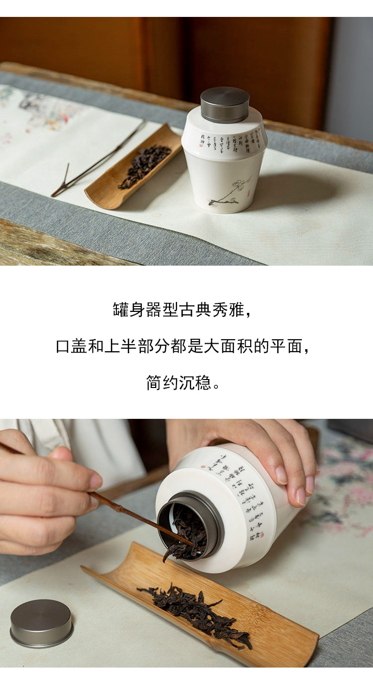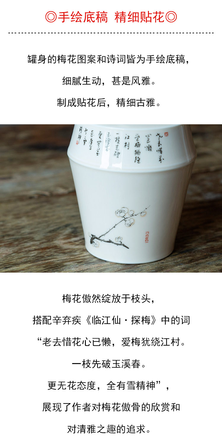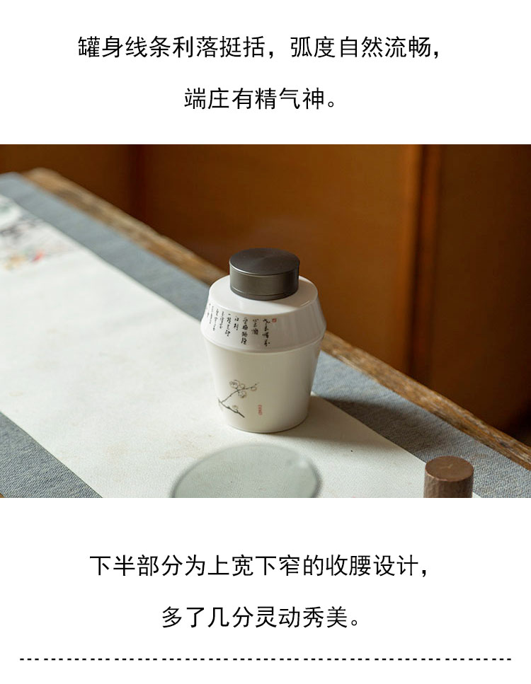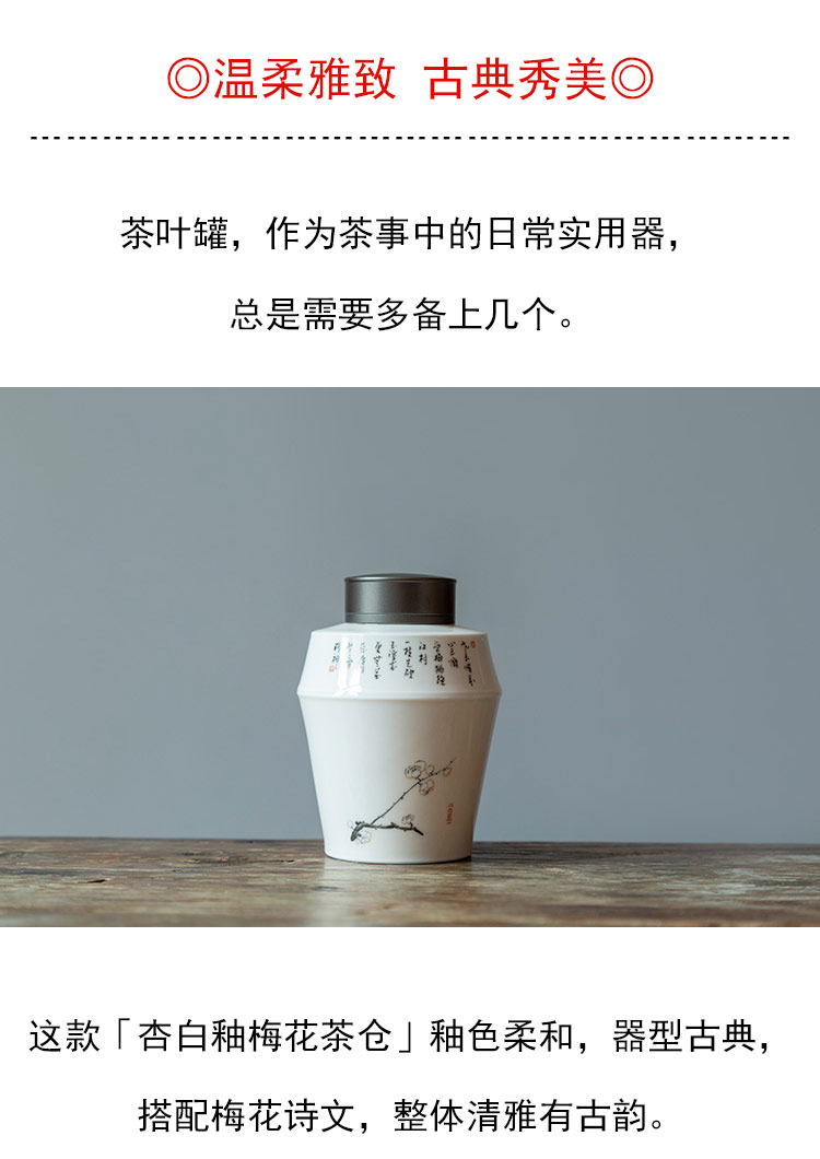 茶香记 茶叶罐 杏白釉梅花茶仓 釉色温润 小巧实用 清雅文气 密封性佳