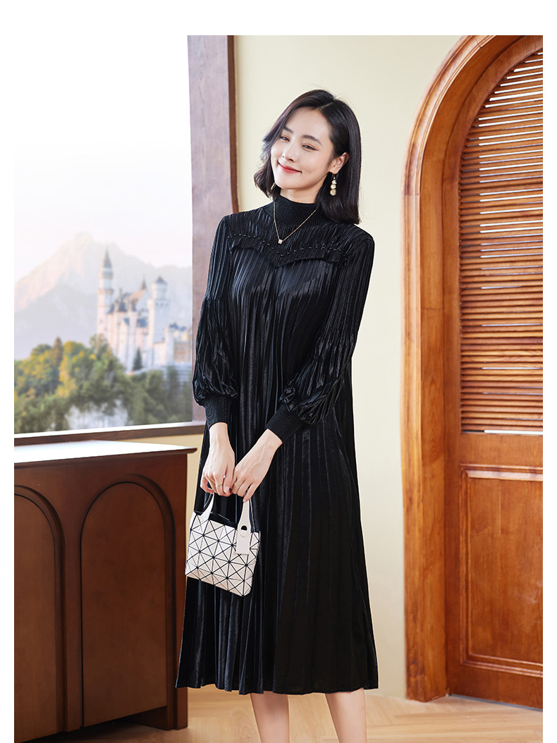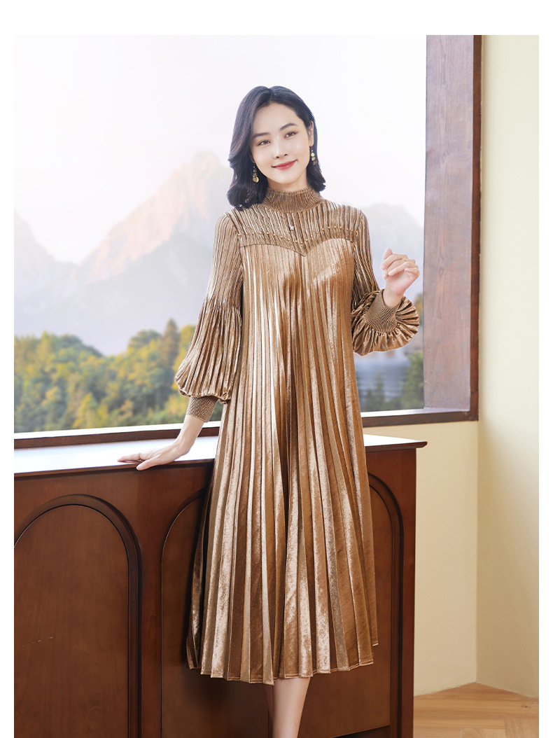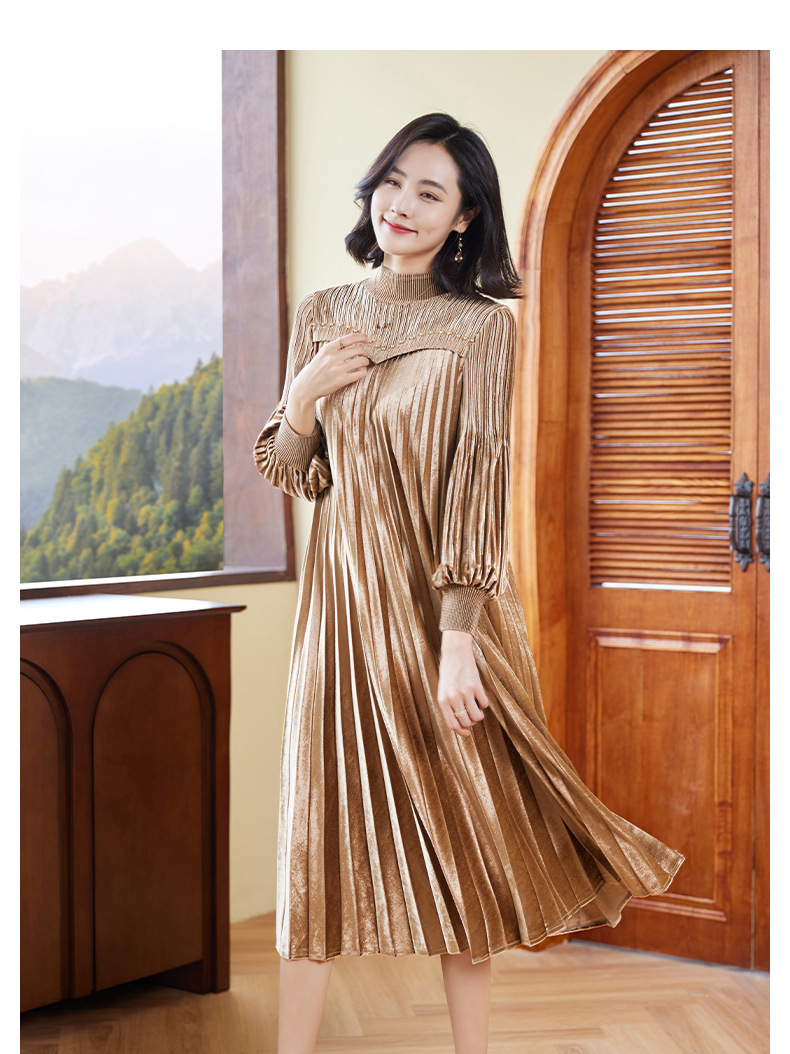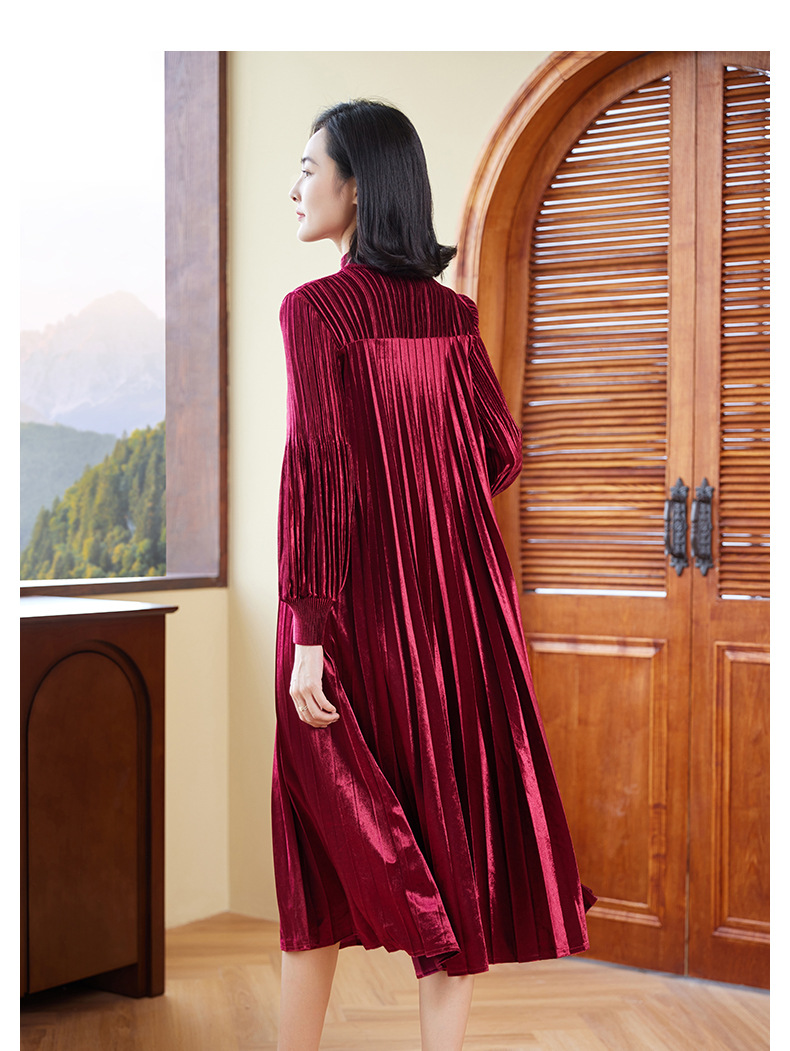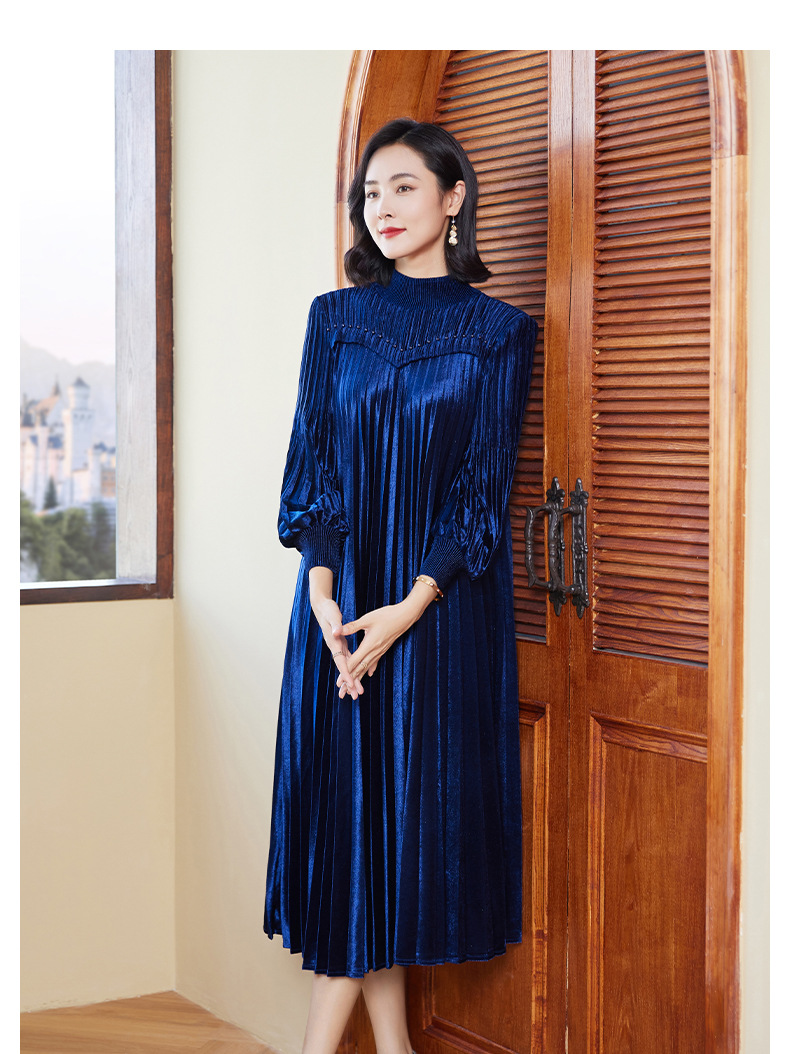 XSL S3346丝绒连衣裙妈妈秋冬装百褶裙