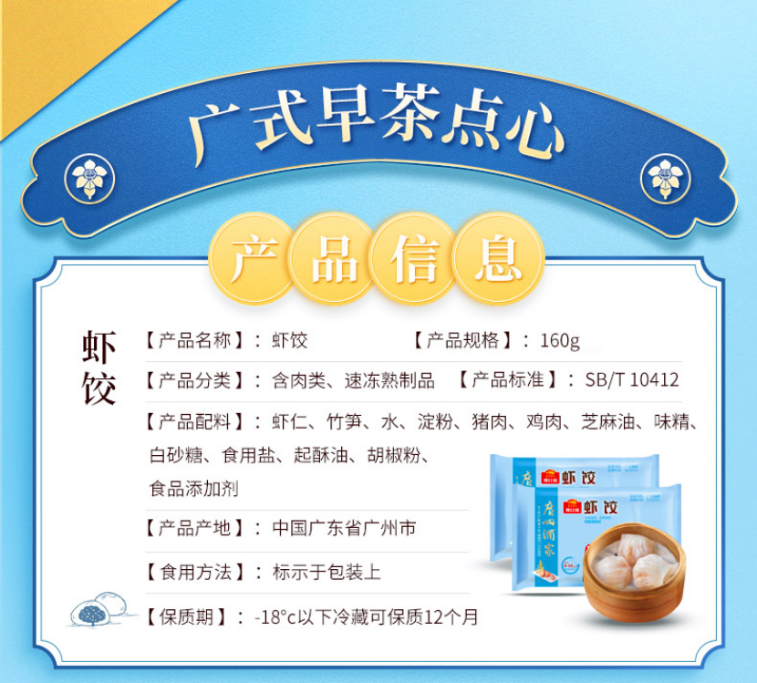 广州酒家利口福虾饺/1包(20g*8个)生产日期:25年10月