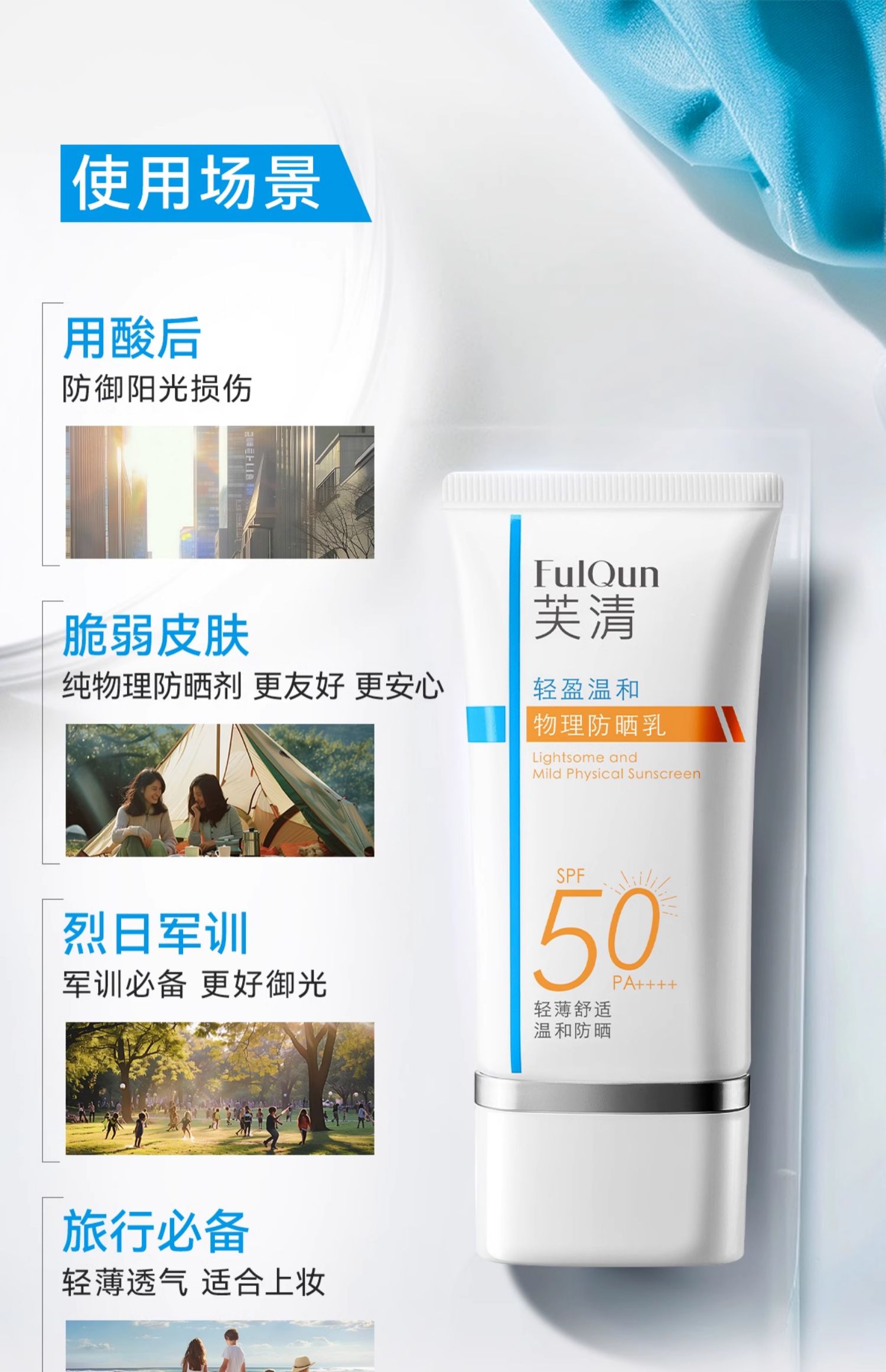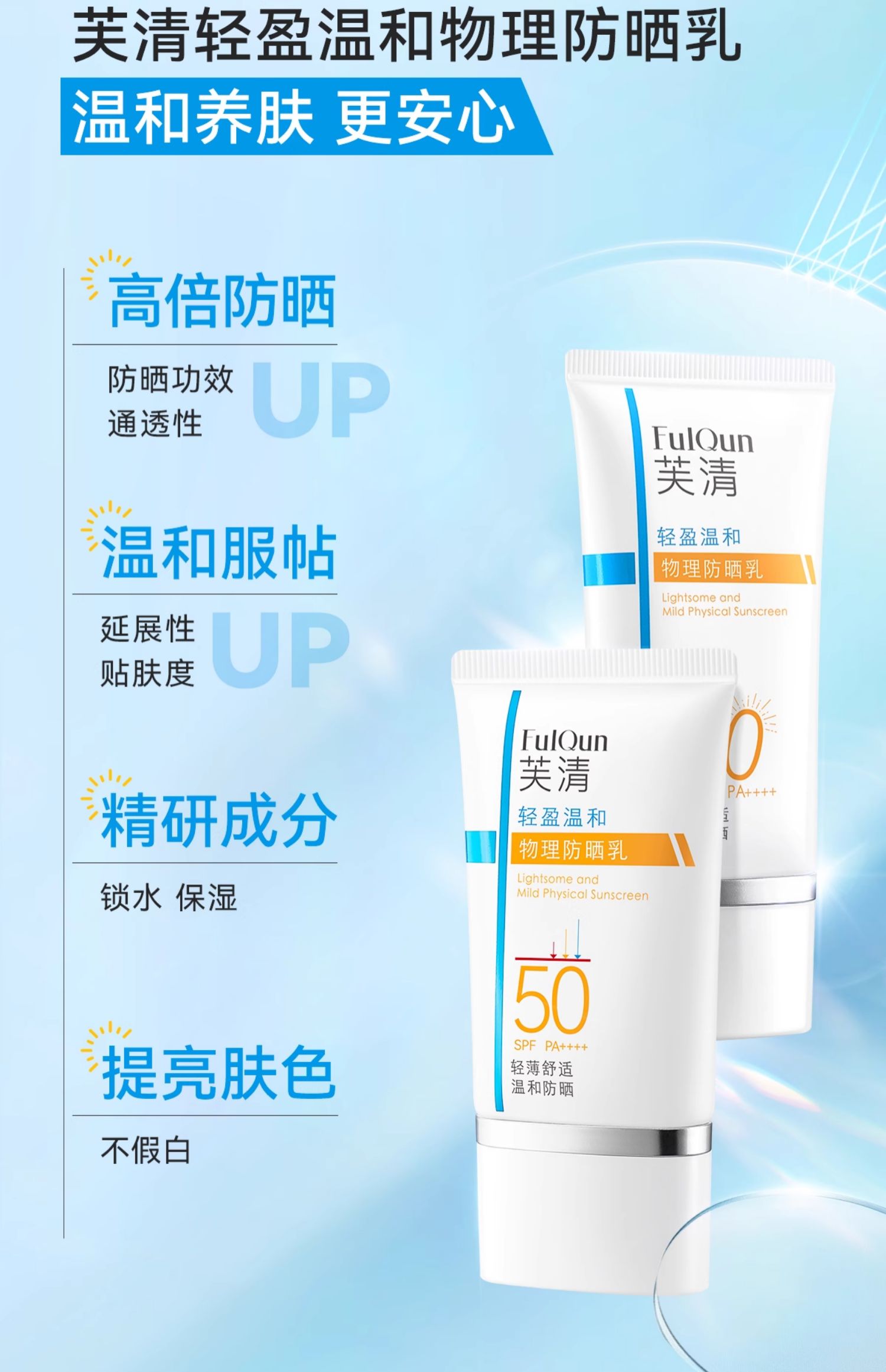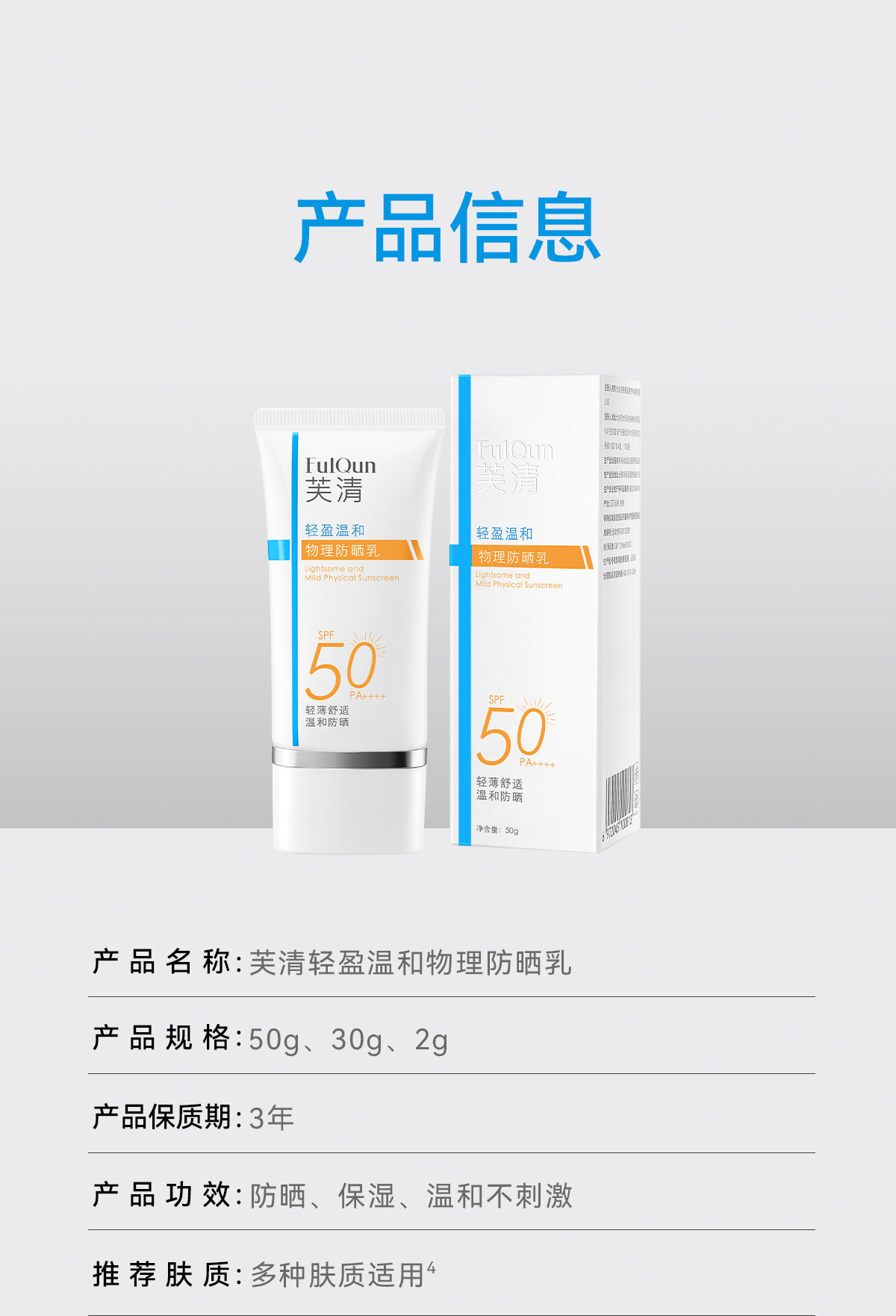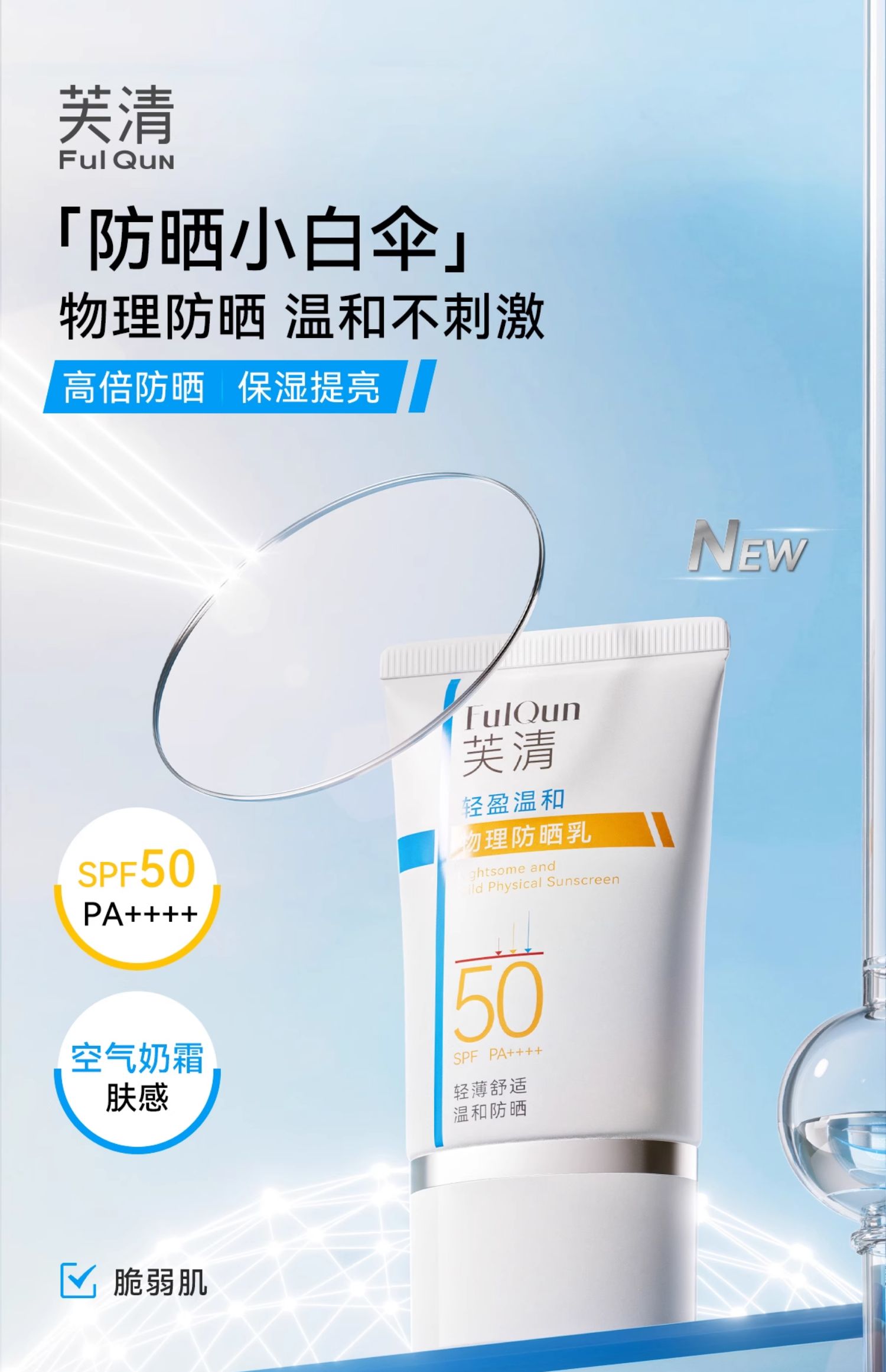 FQ芙清 | 轻盈温和物理防晒乳50g SPF50 PA++++ | 轻薄舒适 温和防晒 高倍长效防护 细腻透明不假白 敏感肌也可用