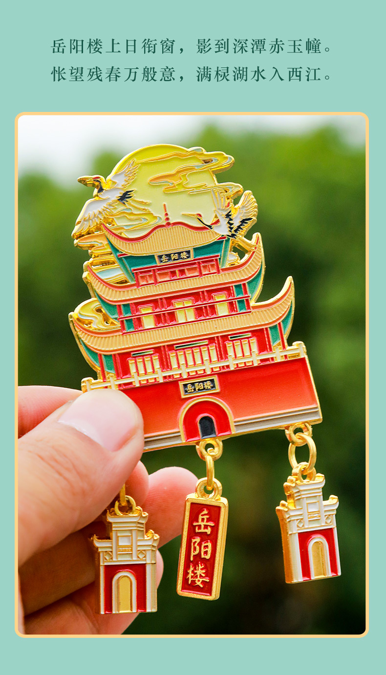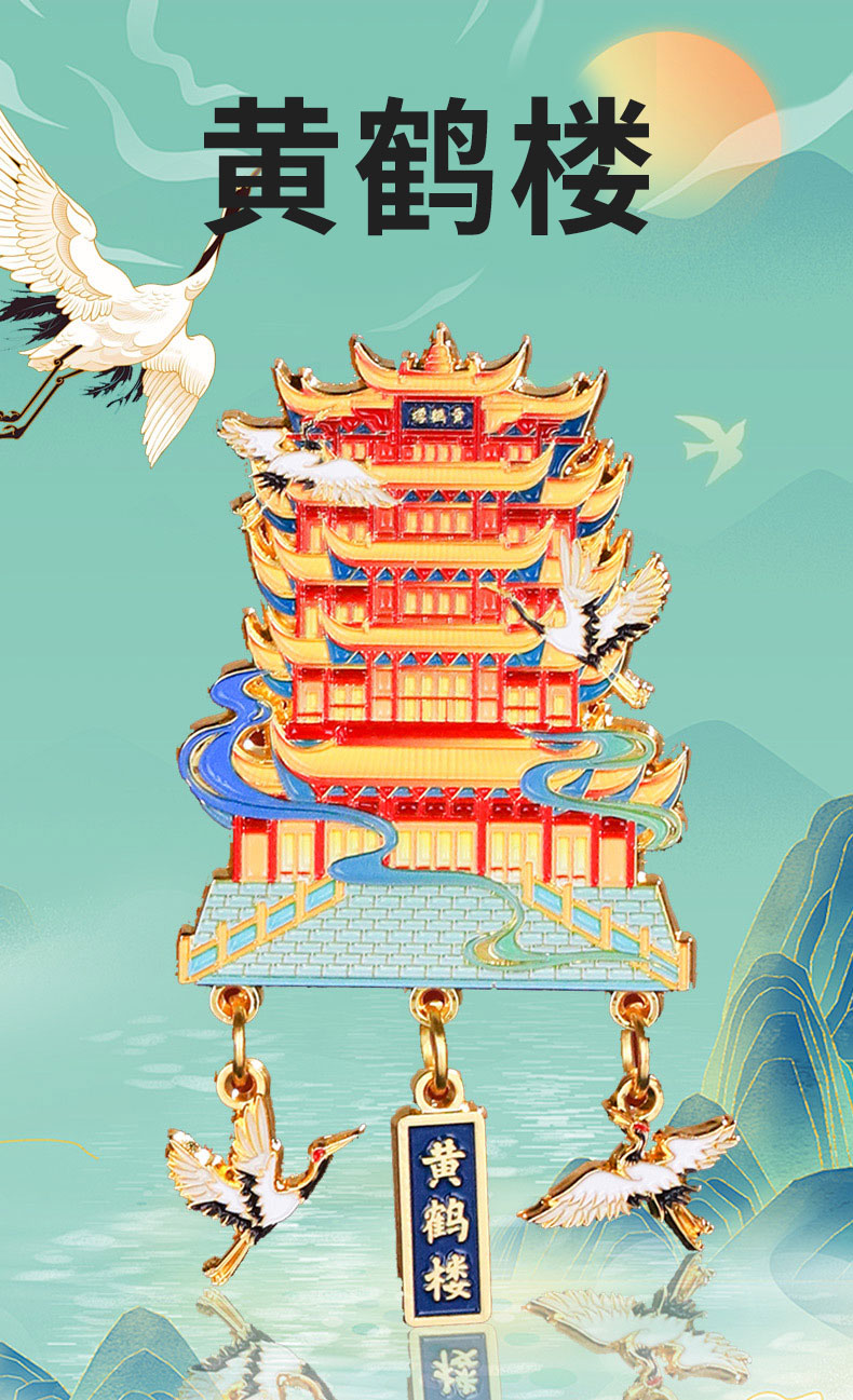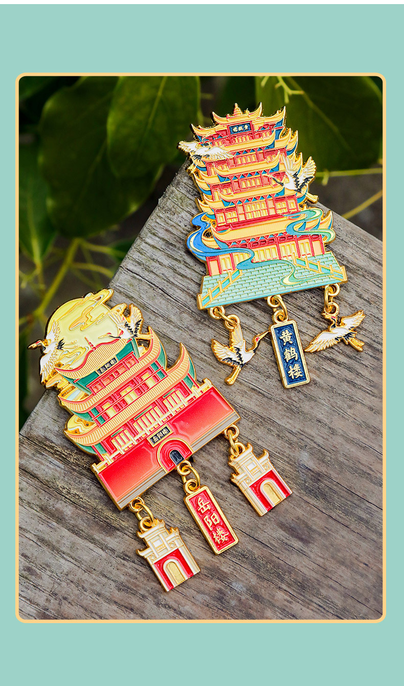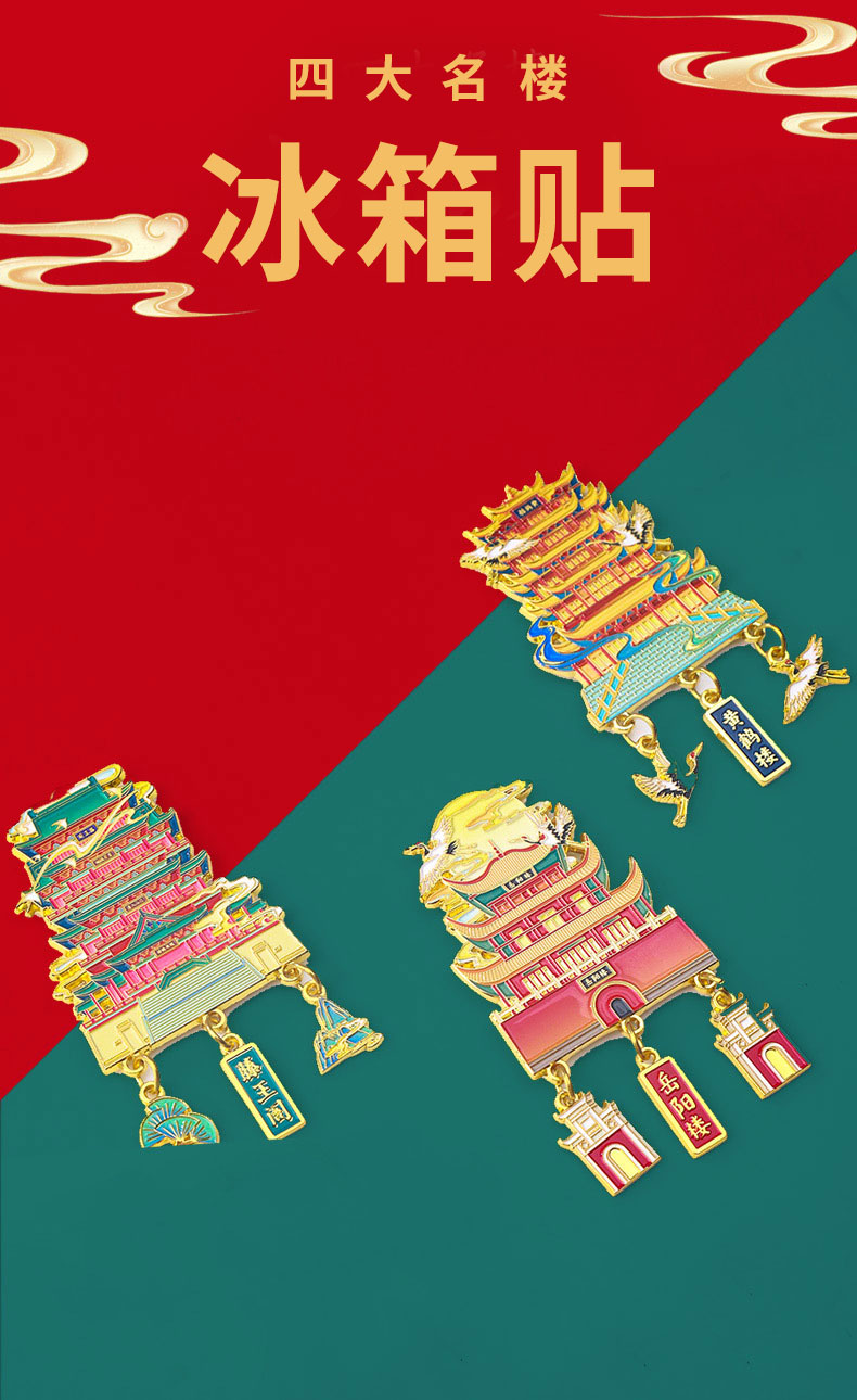 【四大名楼】金属吊坠冰箱贴黄鹤楼鹳雀楼滕王阁岳阳楼旅游文化创意纪念品