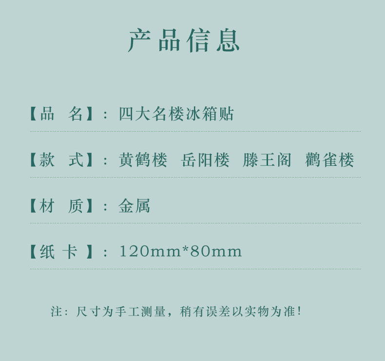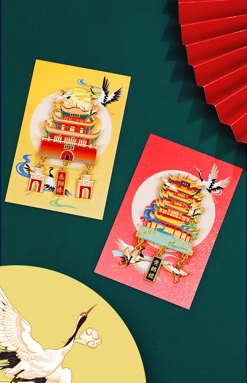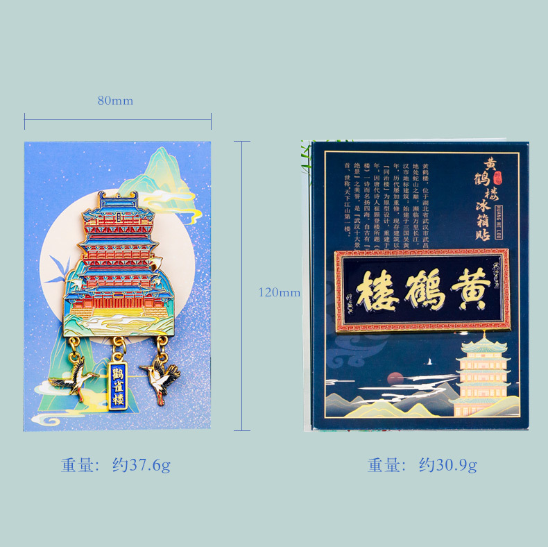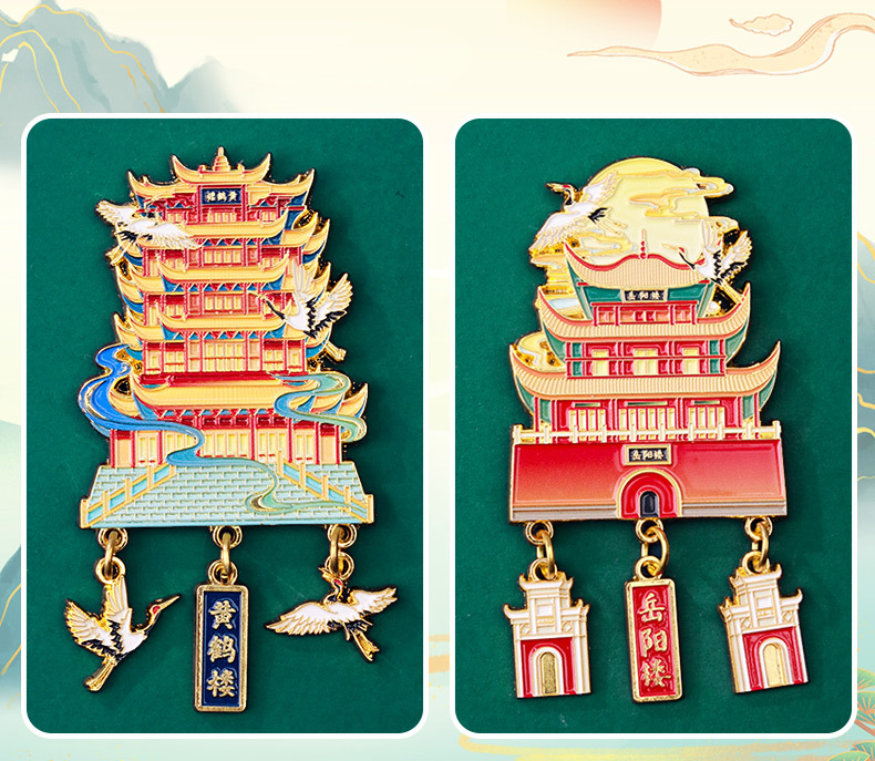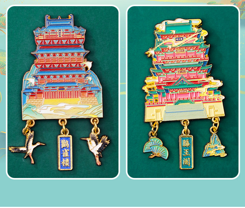 【四大名楼】金属吊坠冰箱贴黄鹤楼鹳雀楼滕王阁岳阳楼旅游文化创意纪念品