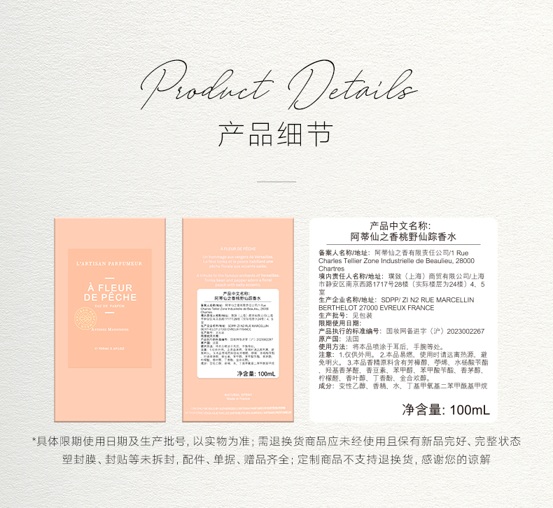 阿蒂仙之香桃野仙踪香水西普调桃子茉莉广藿香