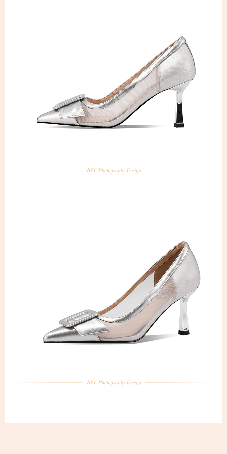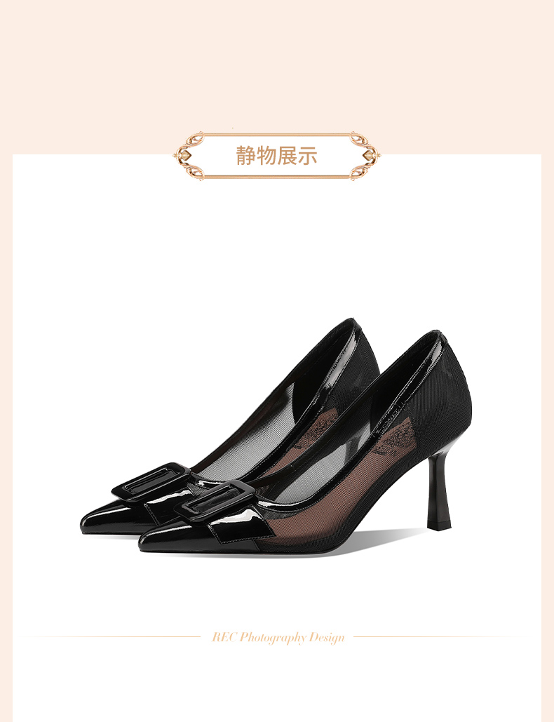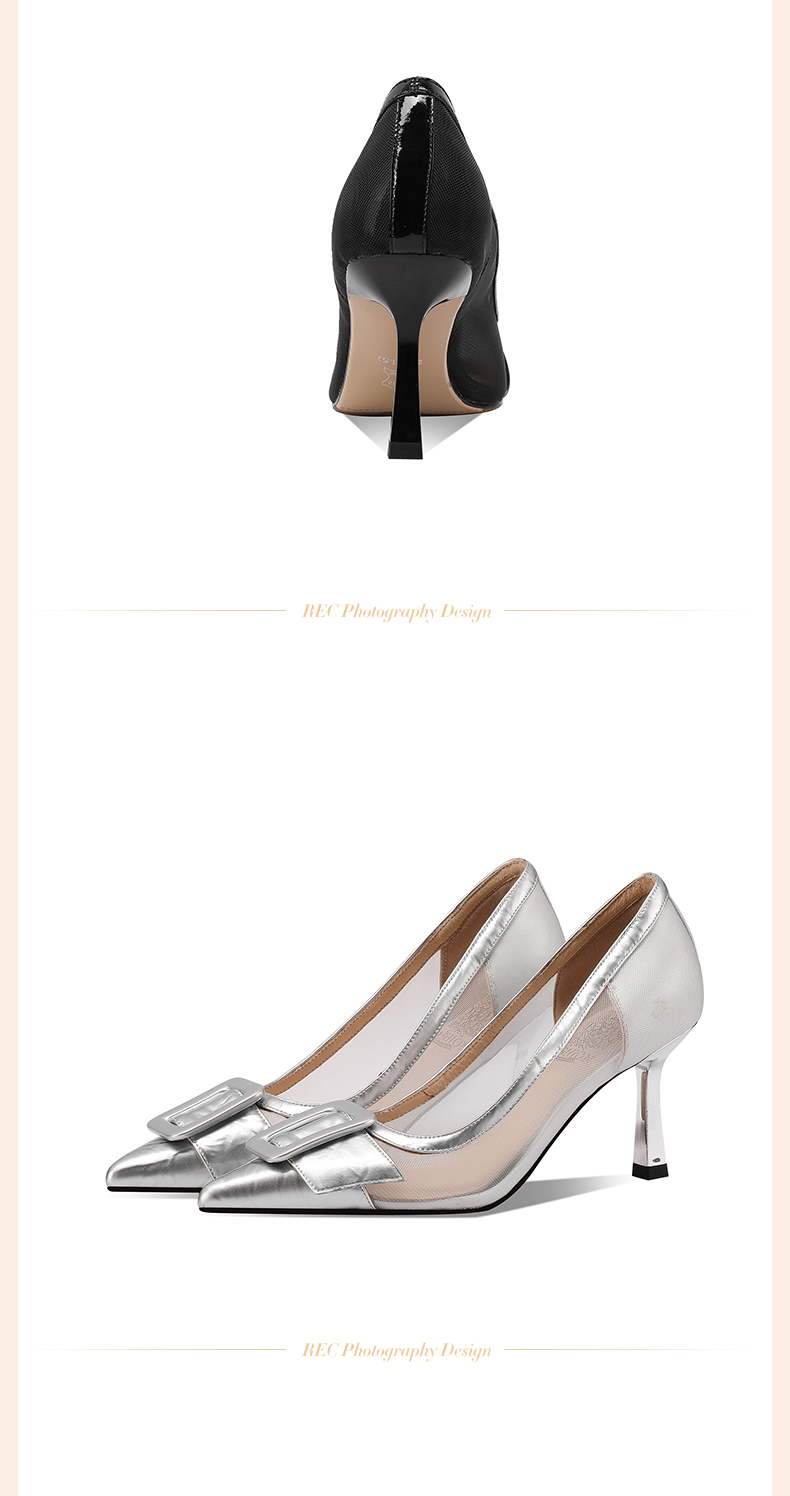 【预售5天】优雅舒适透气,真皮拼接网纱尖头高跟鞋HY&H3397
