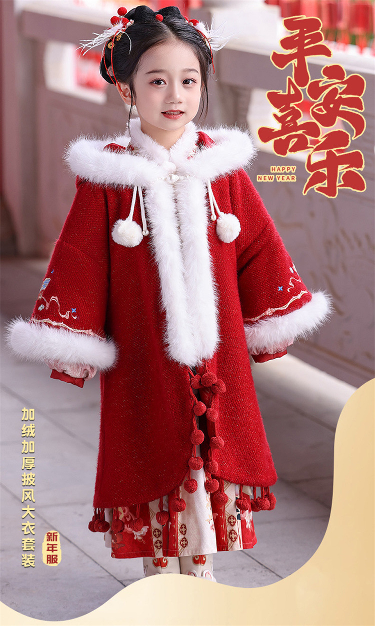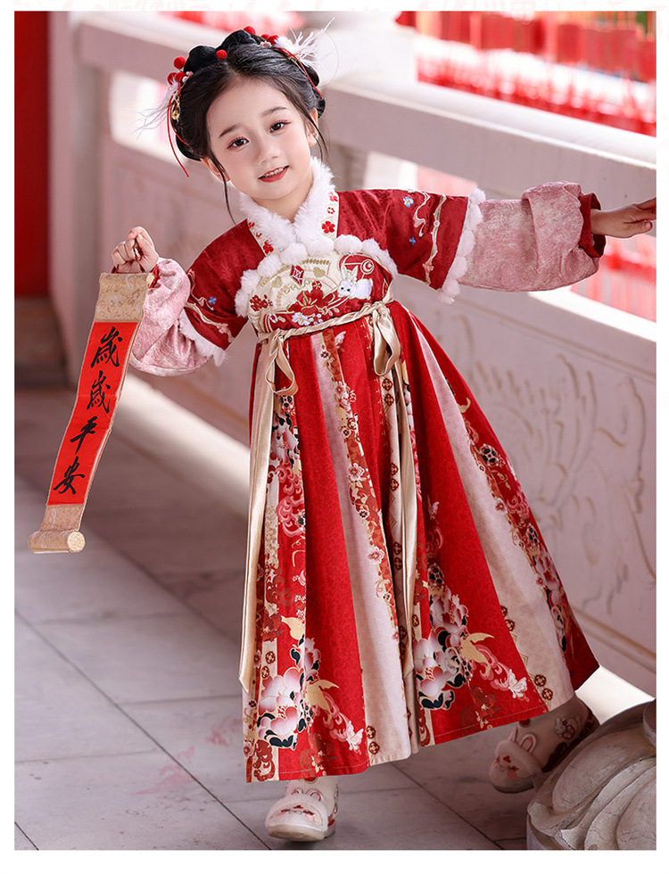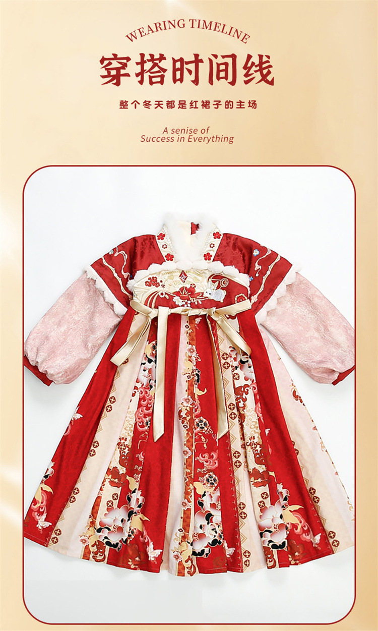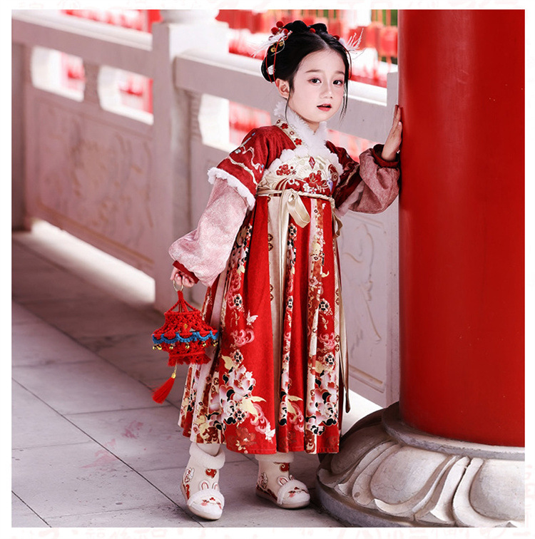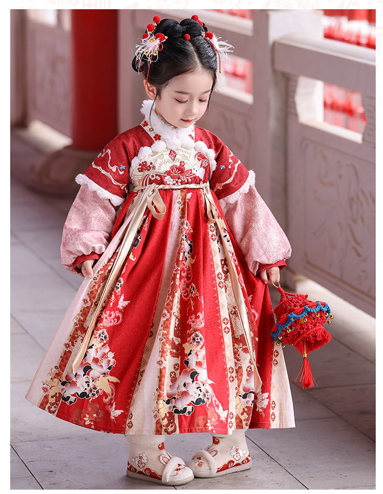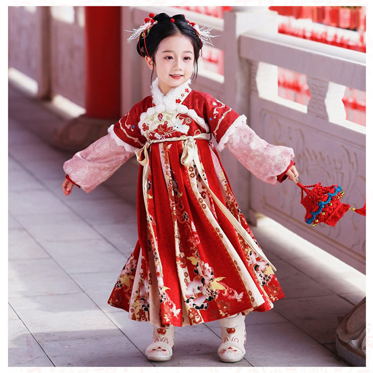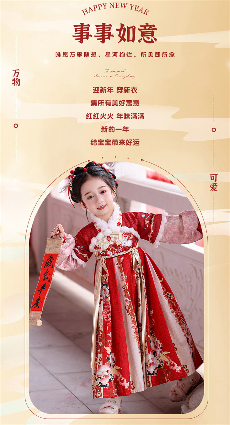 女童加绒裙儿童汉服连衣裙,中国风加厚复古拜年服PJX- DDG8827