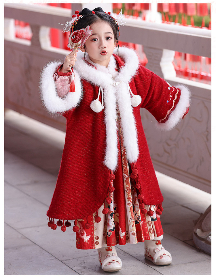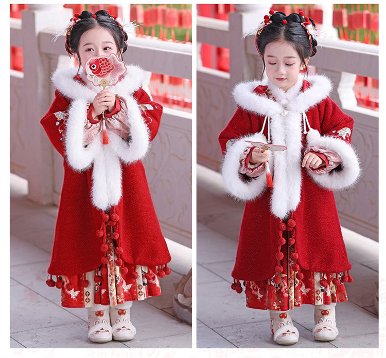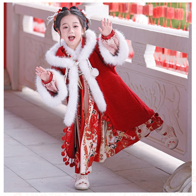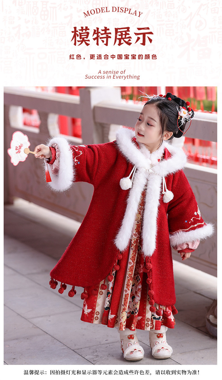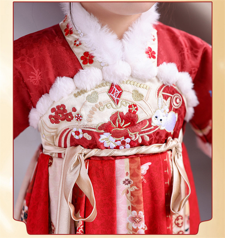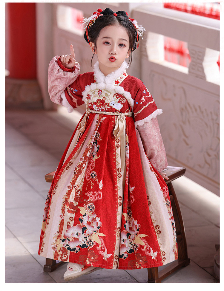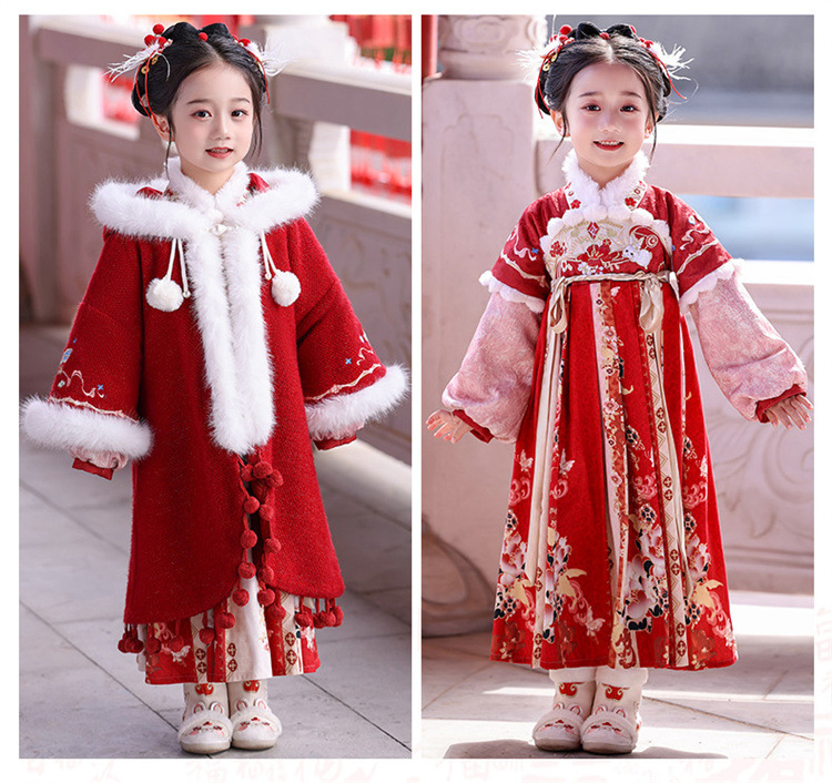 女童加绒裙儿童汉服连衣裙,中国风加厚复古拜年服PJX- DDG8827
