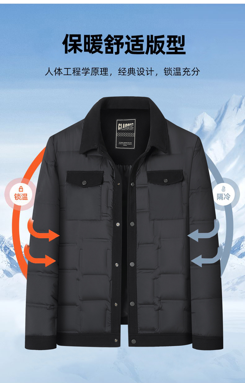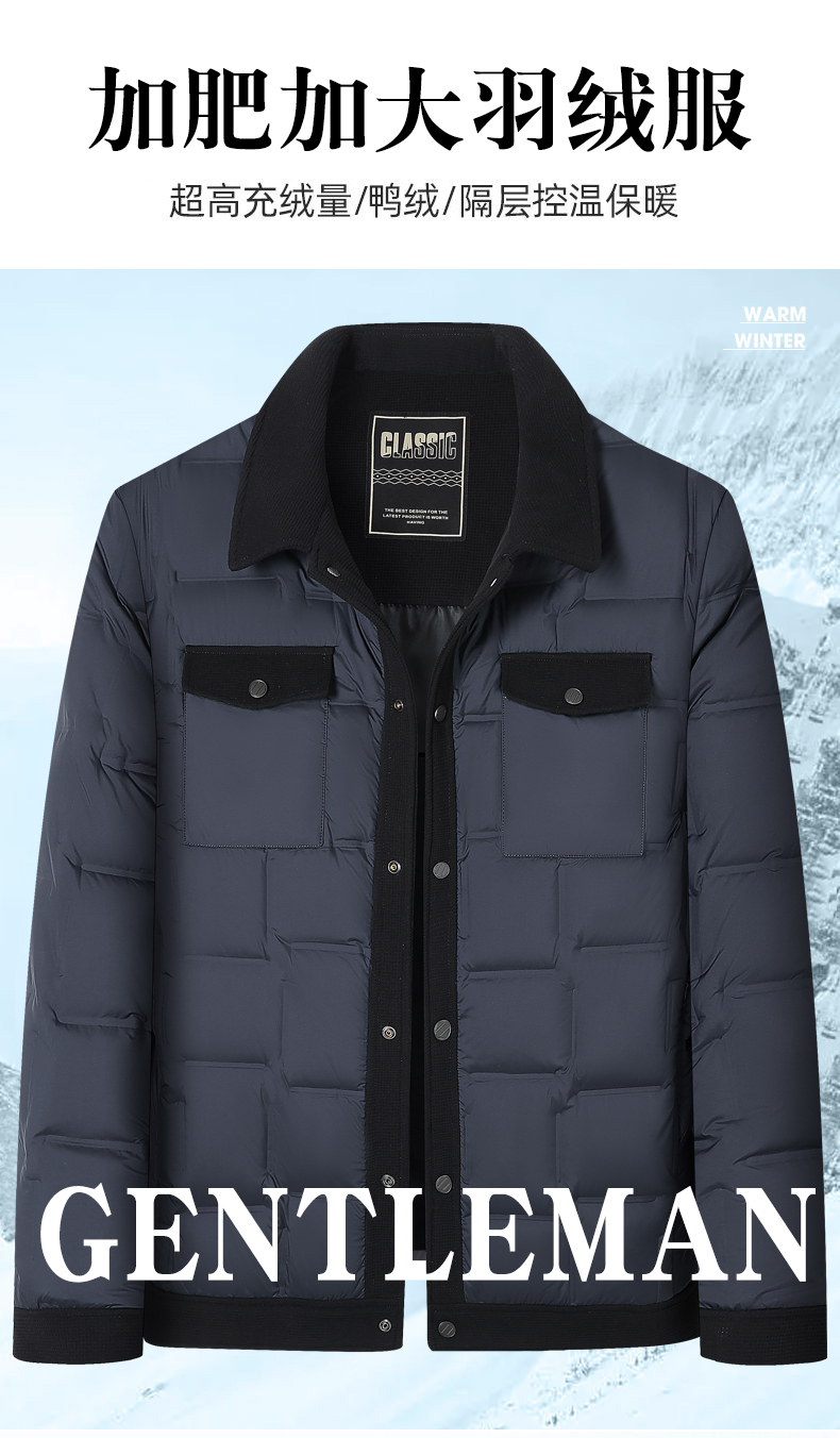 【特大码】【新款DGD】大依优型大码翻领羽绒服90白鸭绒外套休闲胖子大码男休闲宽松加肥加大上衣
