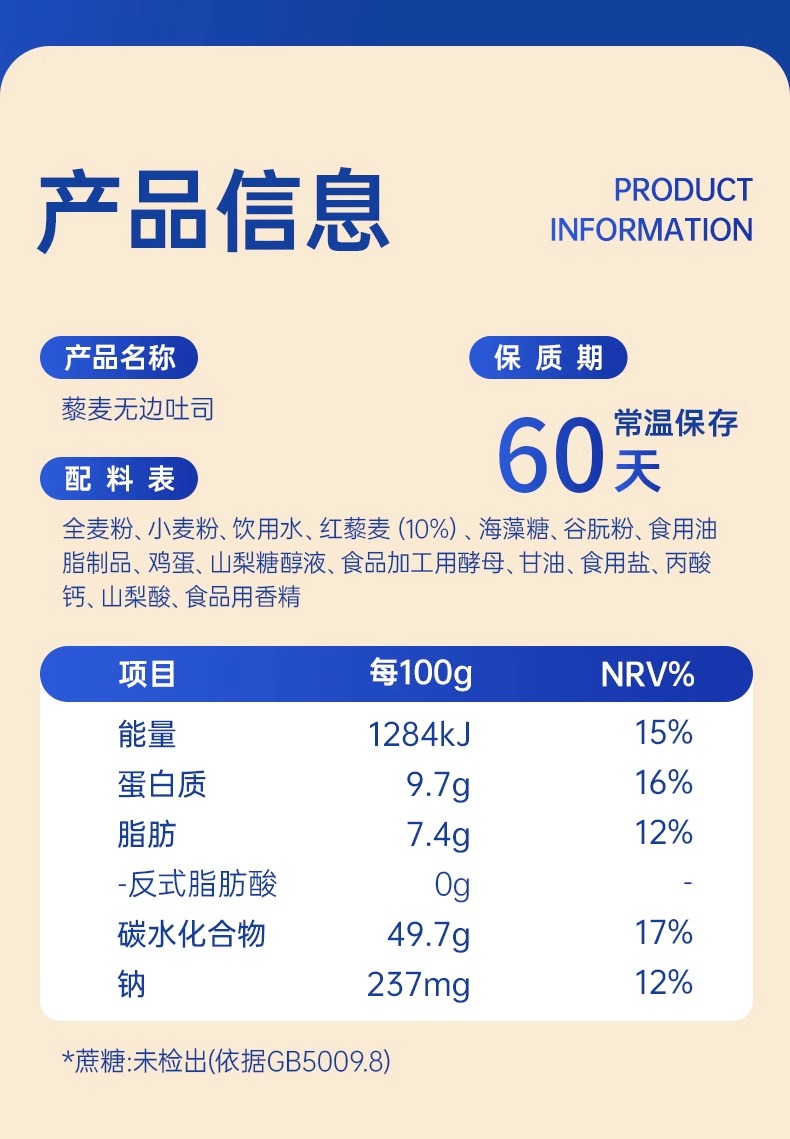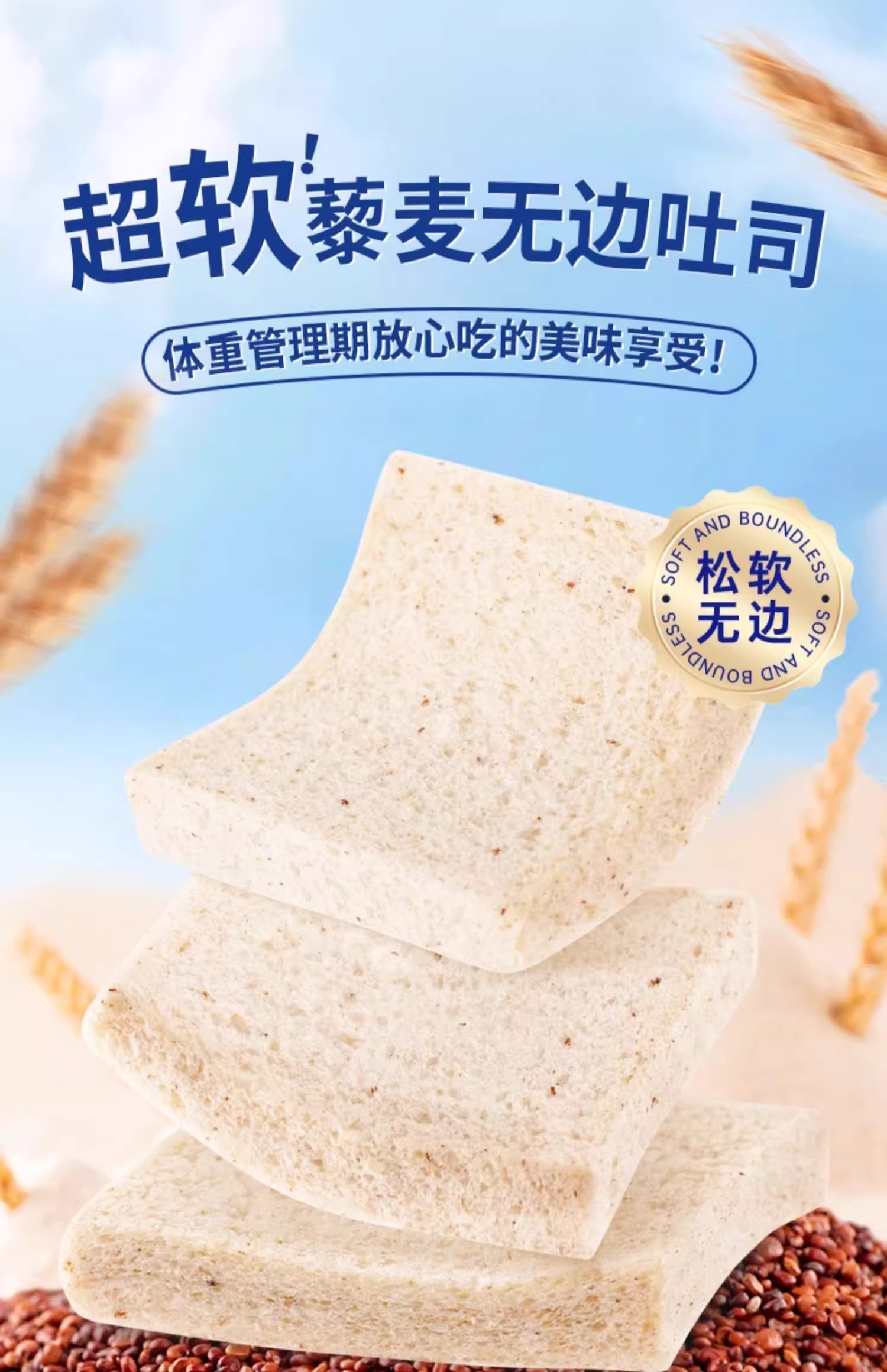七年五季全麦藜麦无边吐司 /健身代餐饱腹零食 超软的无边吐司