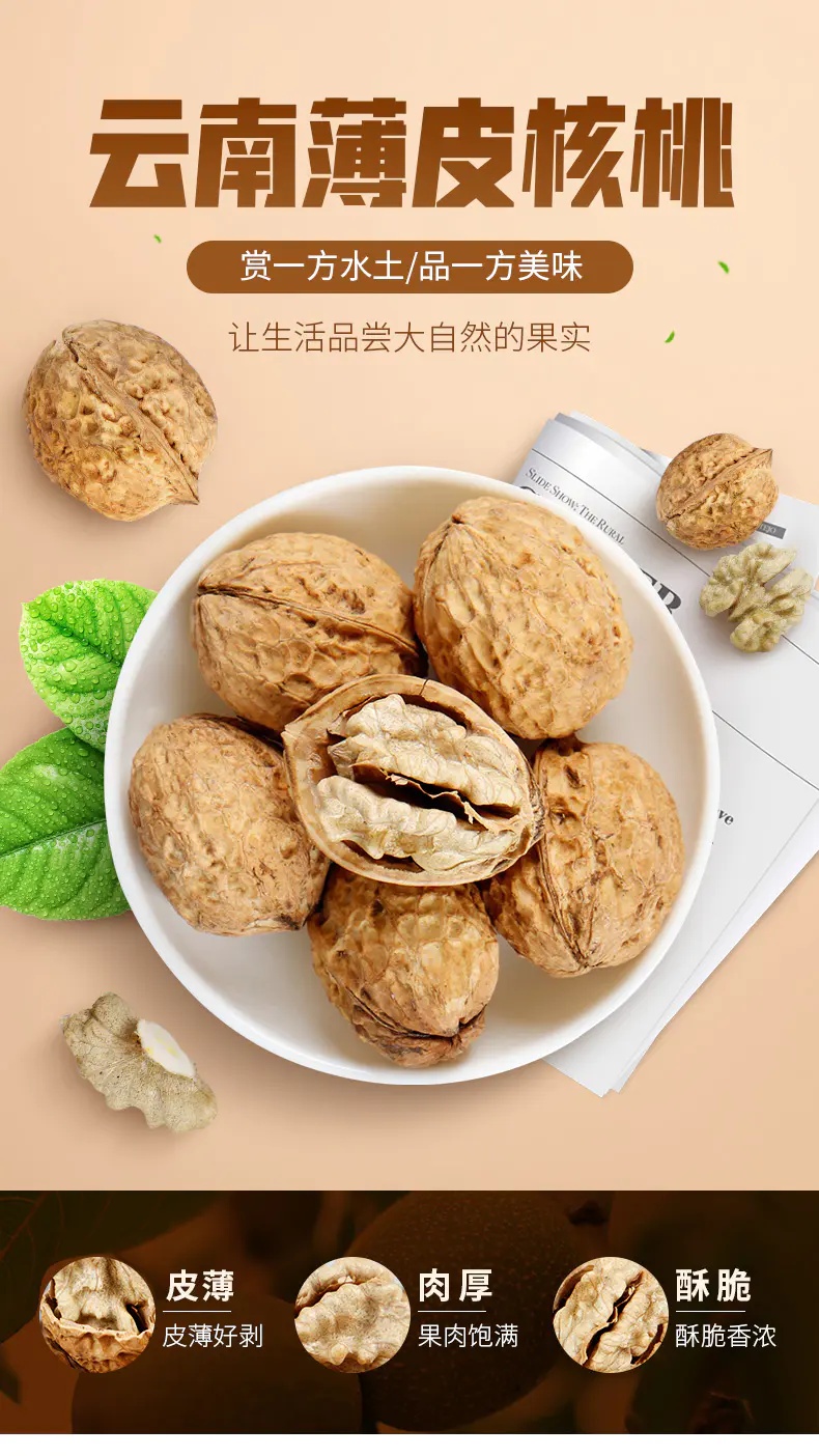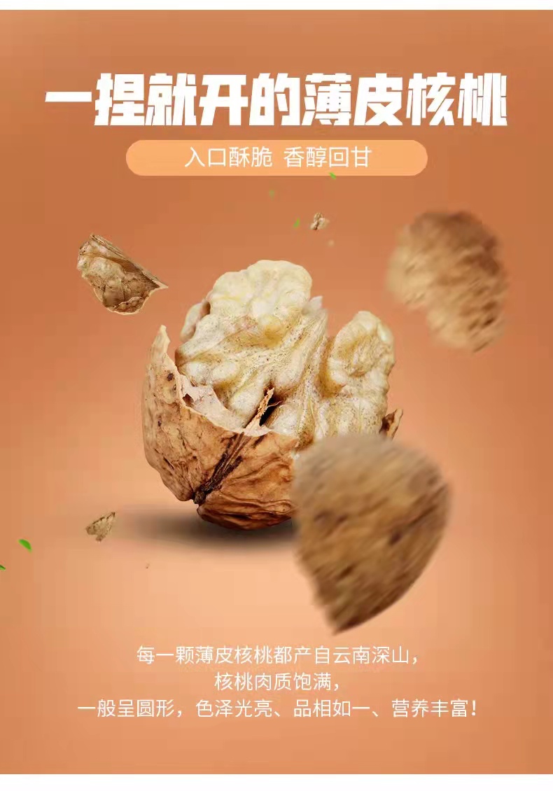 【大姚薄皮干核桃】买3斤送核桃夹 1斤不送 香味醇厚悠长 满嘴声香 皮薄肉细 吃起来甘香不腻,不涩口,果肉饱满,云南大姚地理标志性产品 2种规格任选