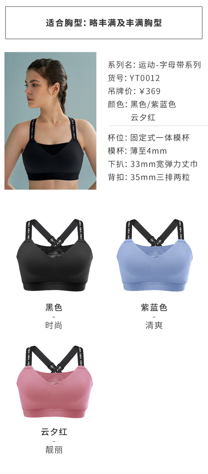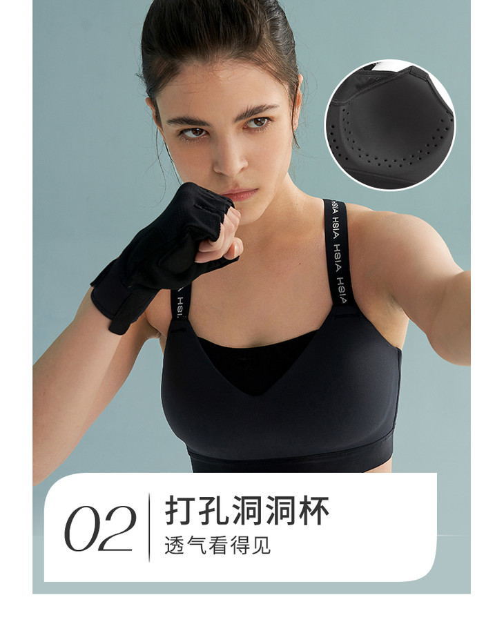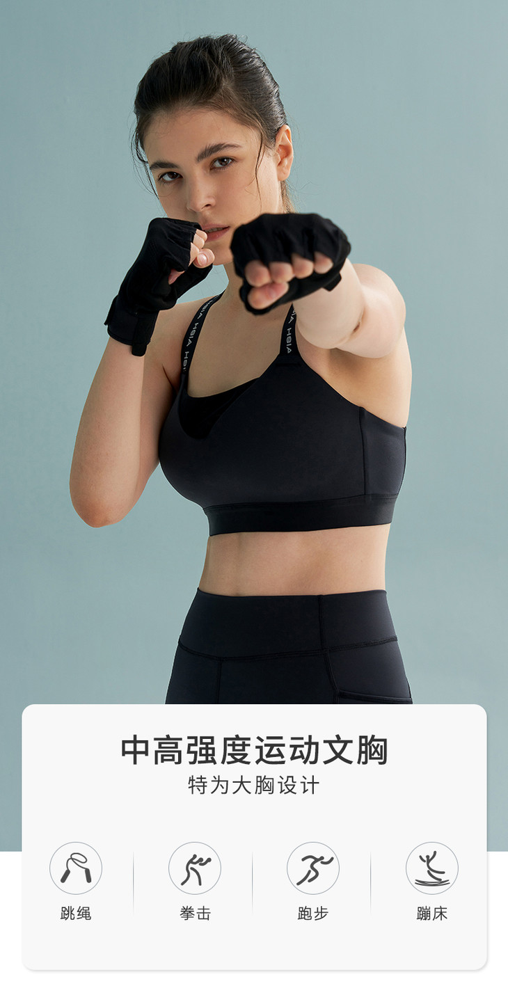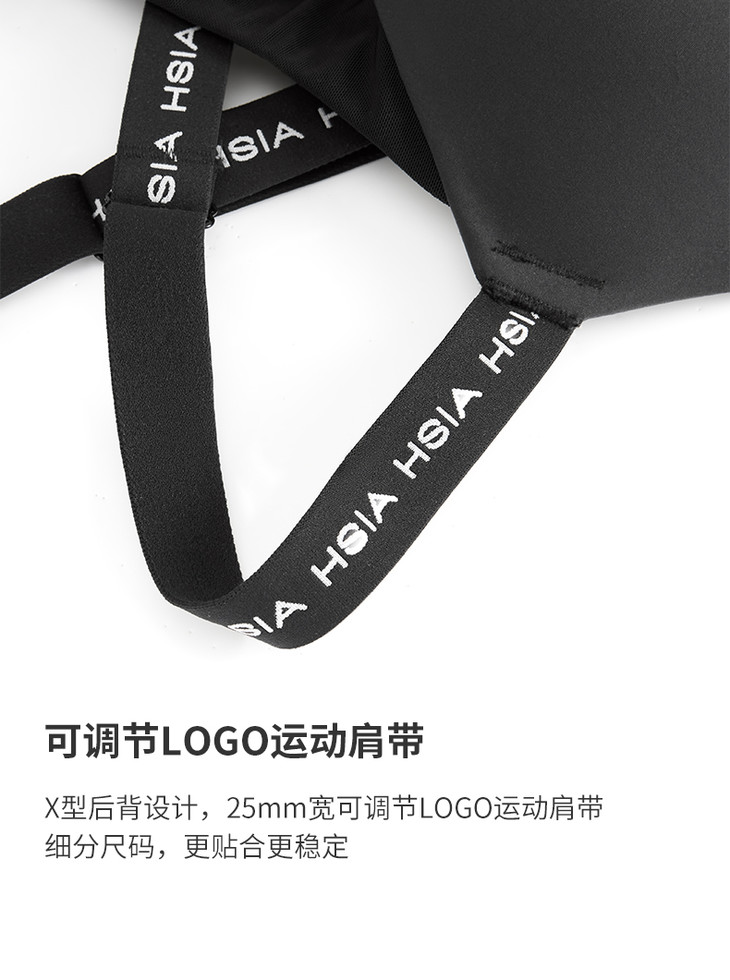HSIA遐运动文胸女大胸防抖防震字母带交叉跑步高强度健身无痕内衣