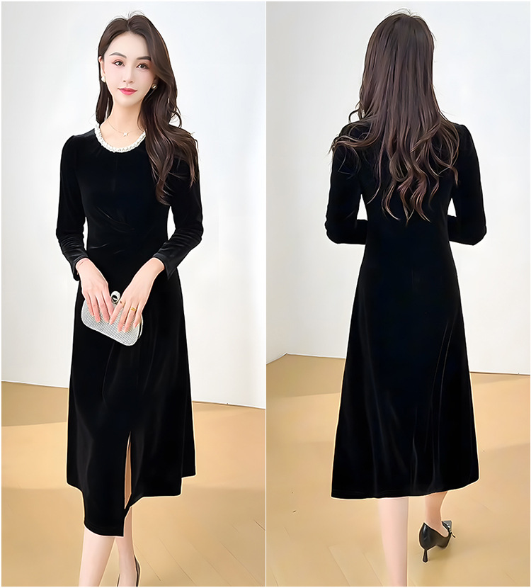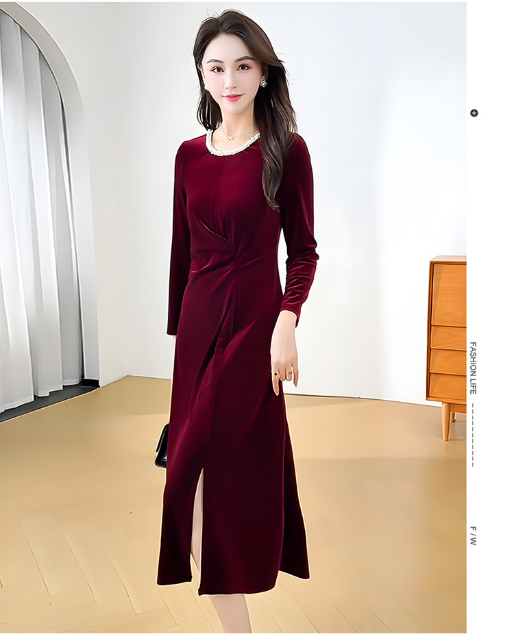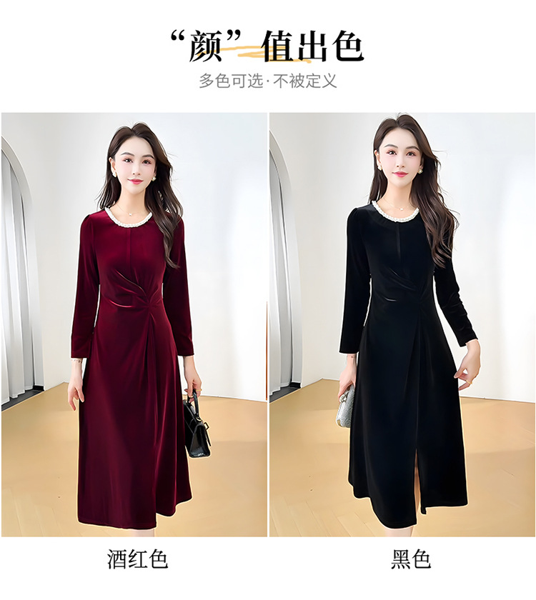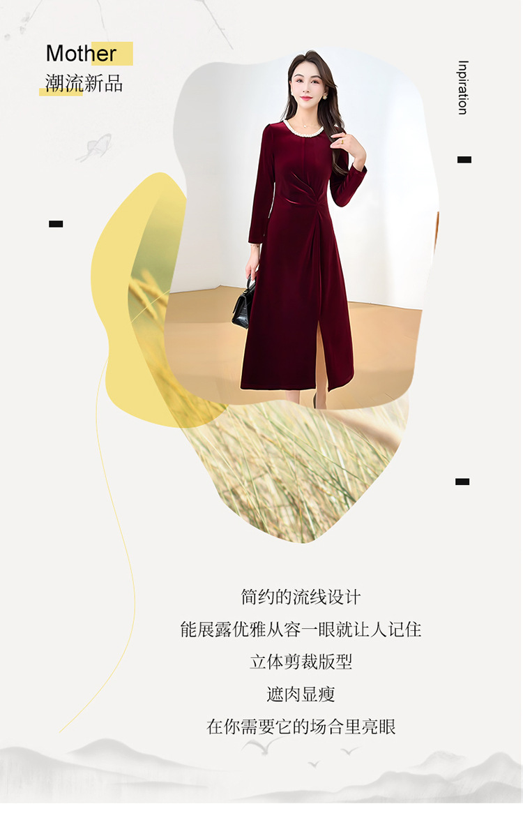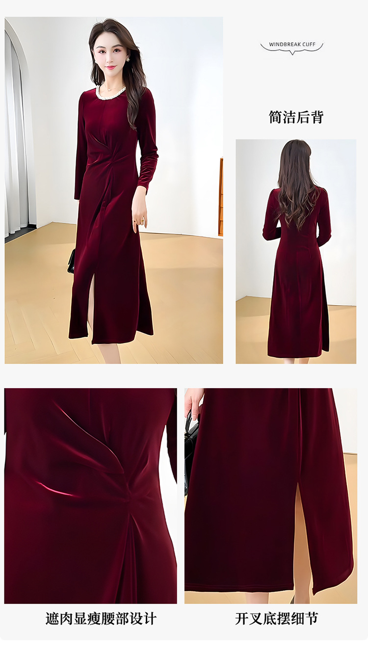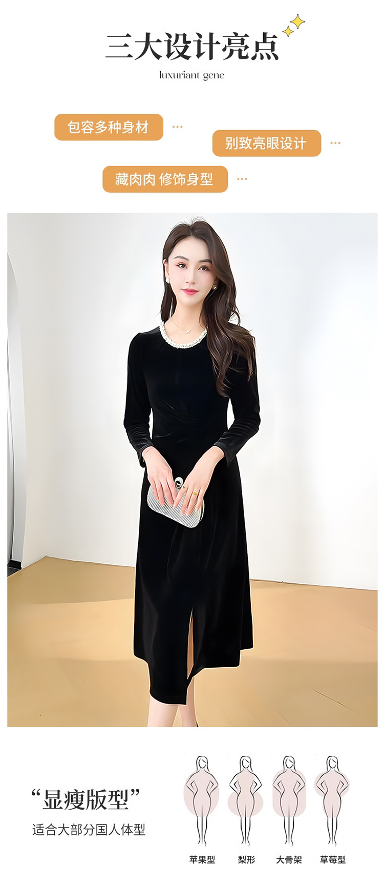 QYM 25S05-Y金丝绒连衣裙开衩礼服裙时尚