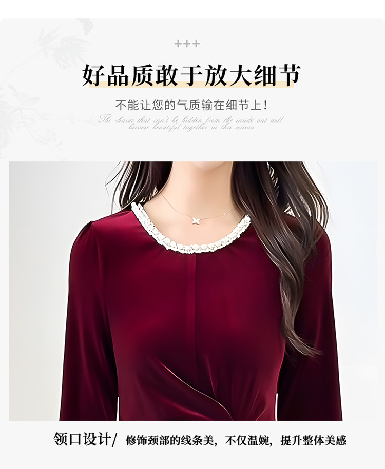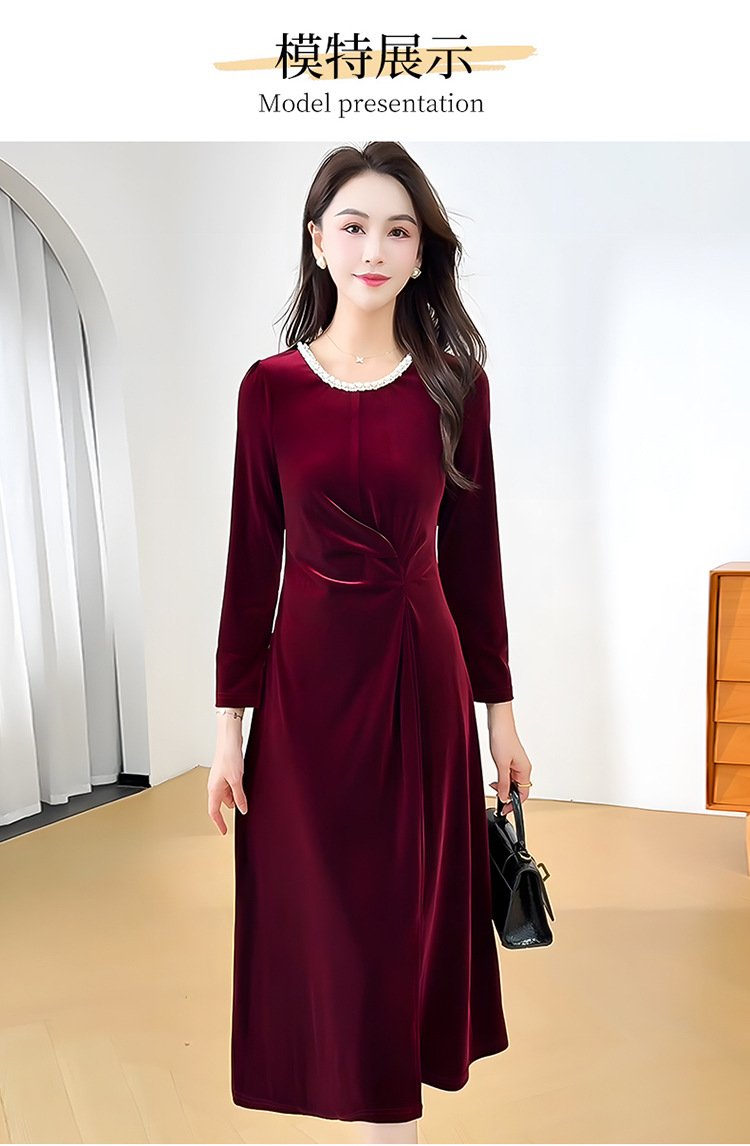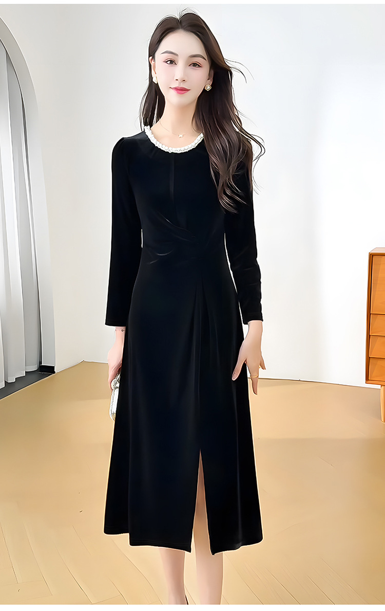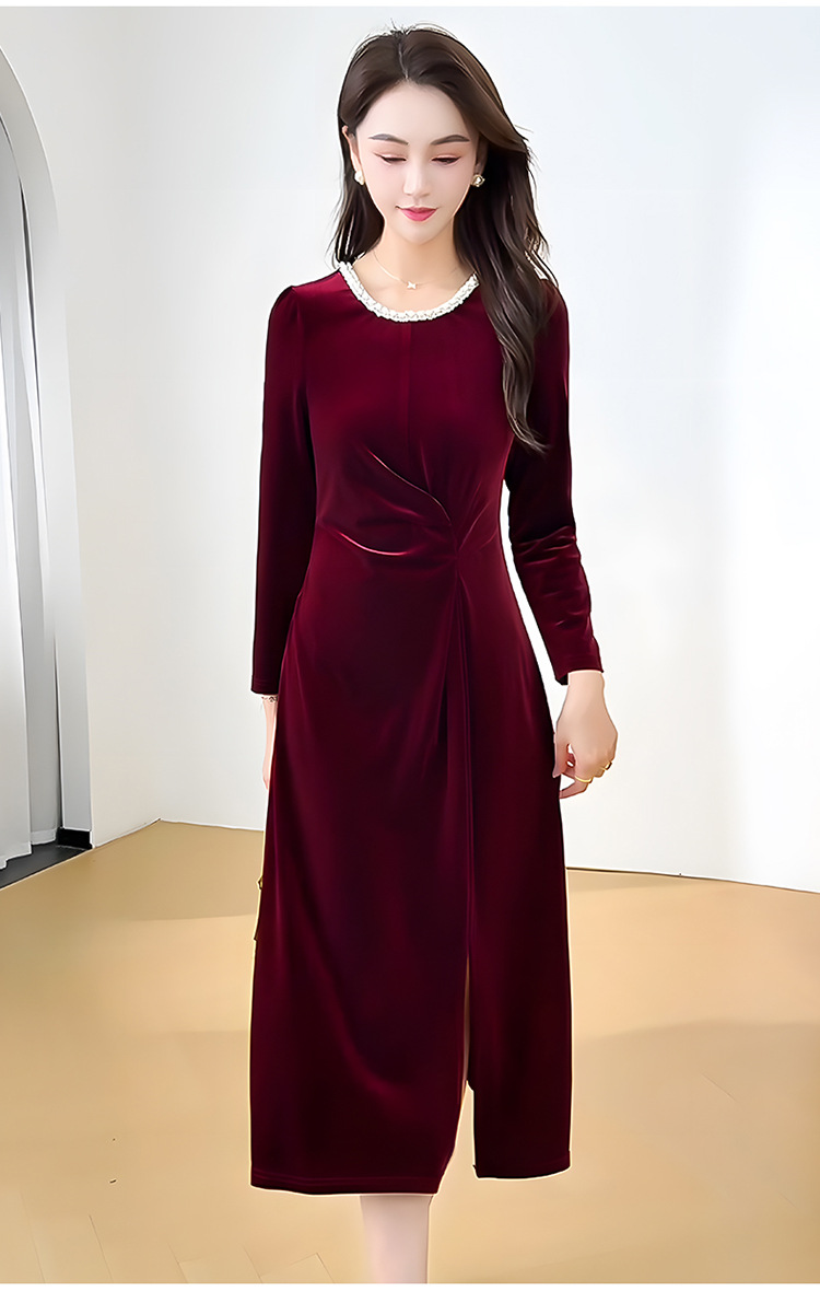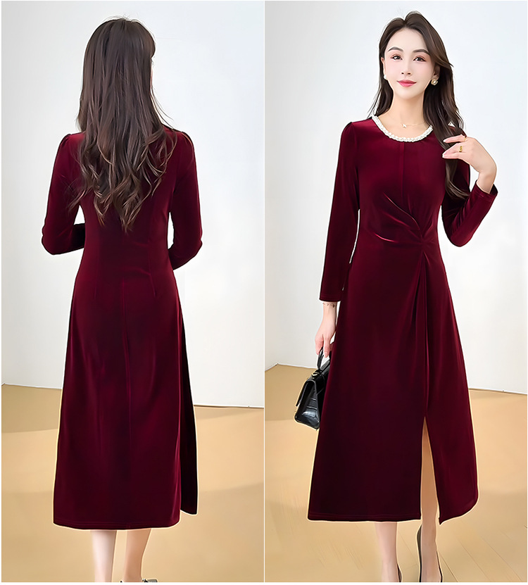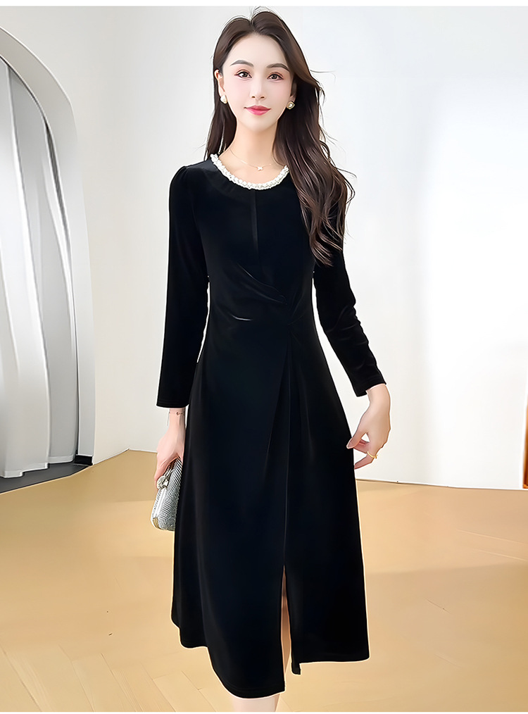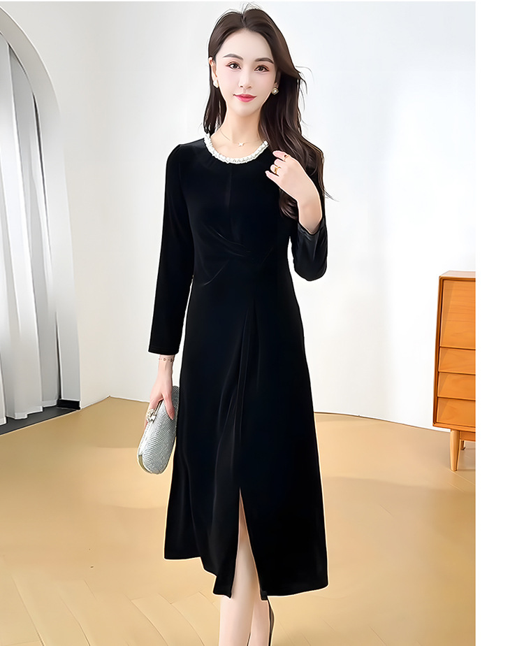 QYM 25S05-Y金丝绒连衣裙开衩礼服裙时尚