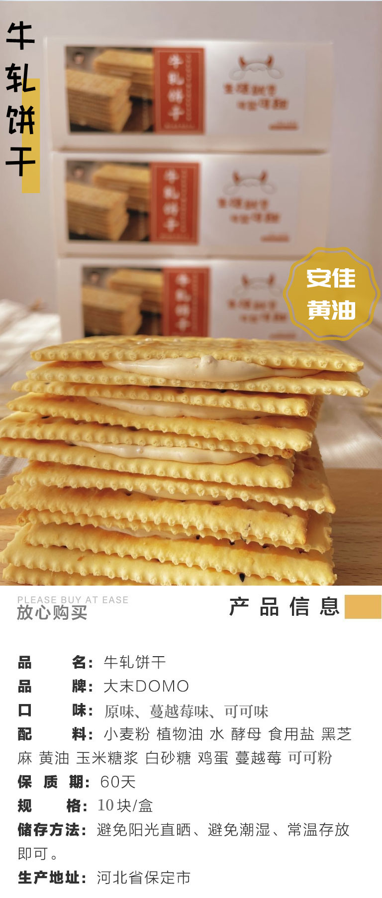 【预售】大末手撕牛轧饼干 200g/盒(1盒10枚)原味/可可味/蔓越莓味