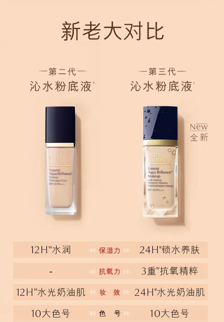 👑 雅诗兰黛沁水粉底液30ml 新版 👍升级,三重超级莓果精粹抗氧化的效果更加好! ✅84%的养肤成分给皮肤更加锁水 ✅还升级了双倍的高保湿精华。 ✅质地更加滋润丝滑,细腻好推开,更加持妆!#1C1:中性白,适合自然/偏白。 #1W0:黄调一白,适合自然偏白的肤质。 #2C0:自然白,适合一般亚洲肤色。 #1C0:冷象牙白,适合白皙肤色。