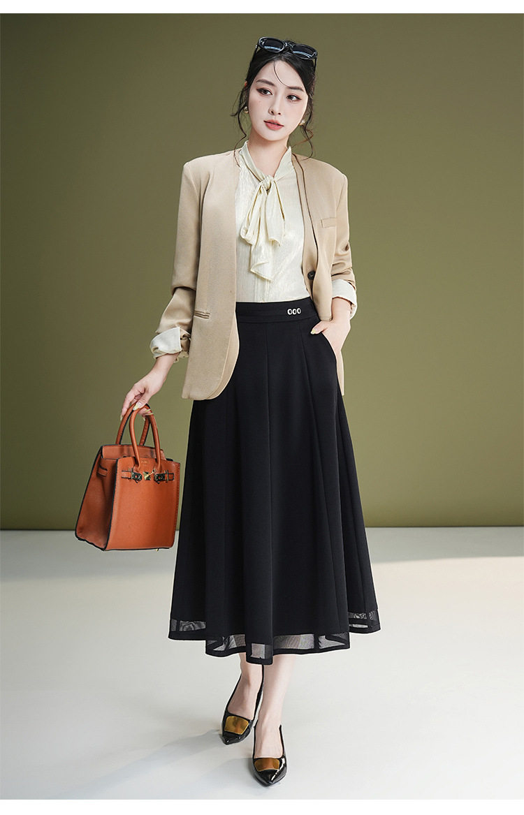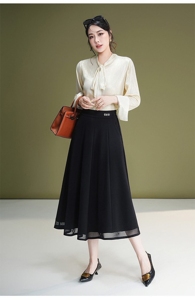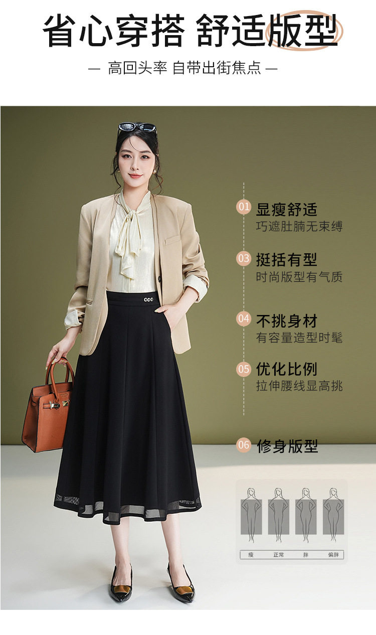 「自」全新升级【铂金会员137/天猫179/差价42】(71347)洛诗琳网纱A字垂感半身裙女2026新款高腰显瘦中长百褶裙