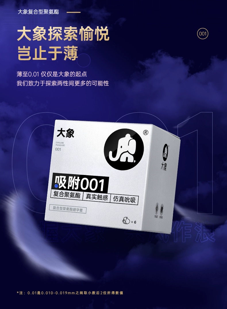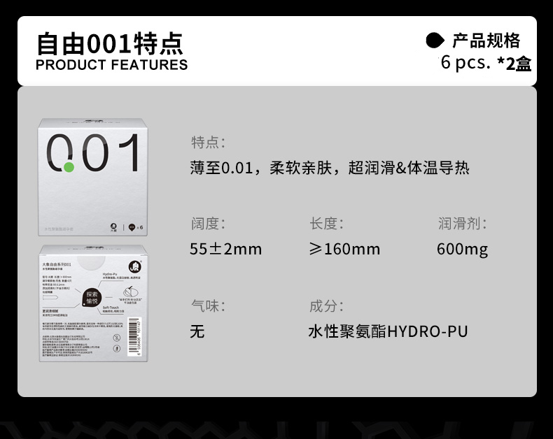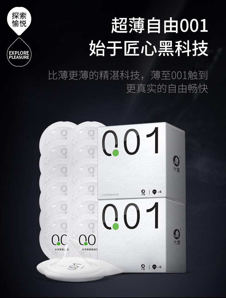 【自由系列 均一薄度 超量润滑】水溶聚氨酯自由001 自由002 大象001避孕套复合聚氨酯0.01(新老包装随机发)