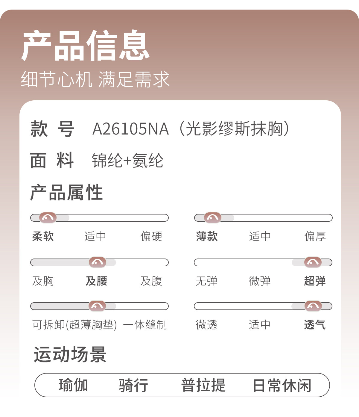 爱暇步瑜伽服2026春夏新款无肩带美背防滑带胸垫抹胸bra瑜伽内衣