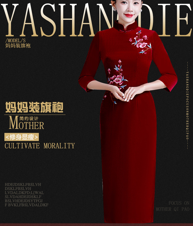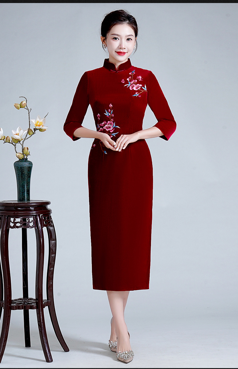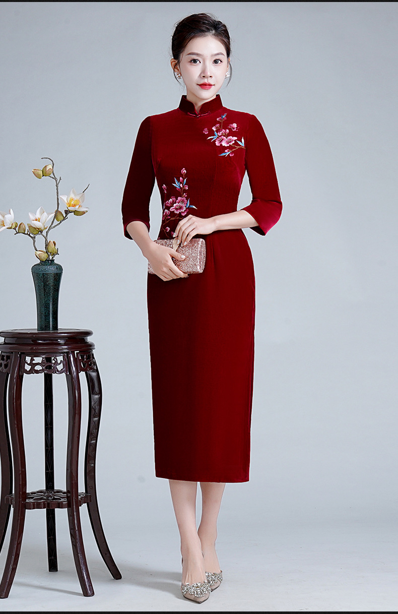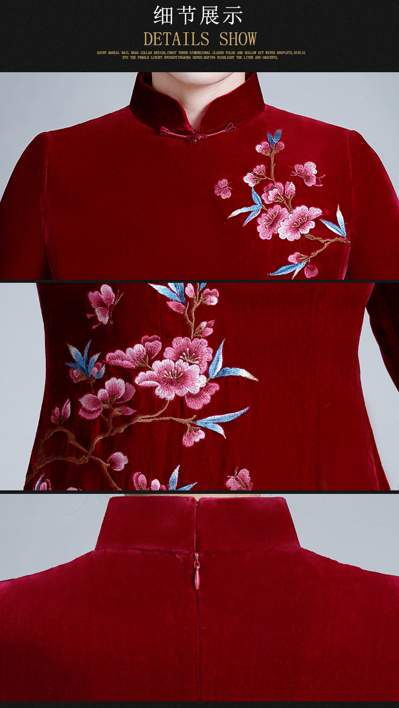 LHS-A36新款喜婆婆婚宴装平时可穿结婚礼服高贵酒红色真丝绒绣花旗袍秋季