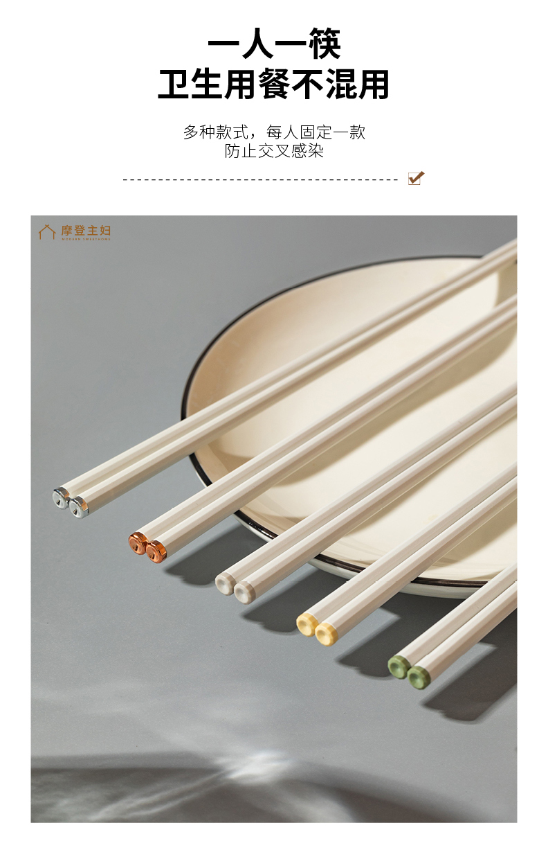摩登主妇抗菌合金筷家用高档2024新款一人一筷防滑防霉耐高温筷子