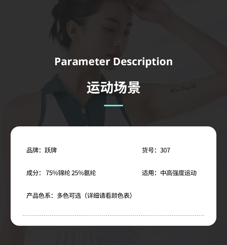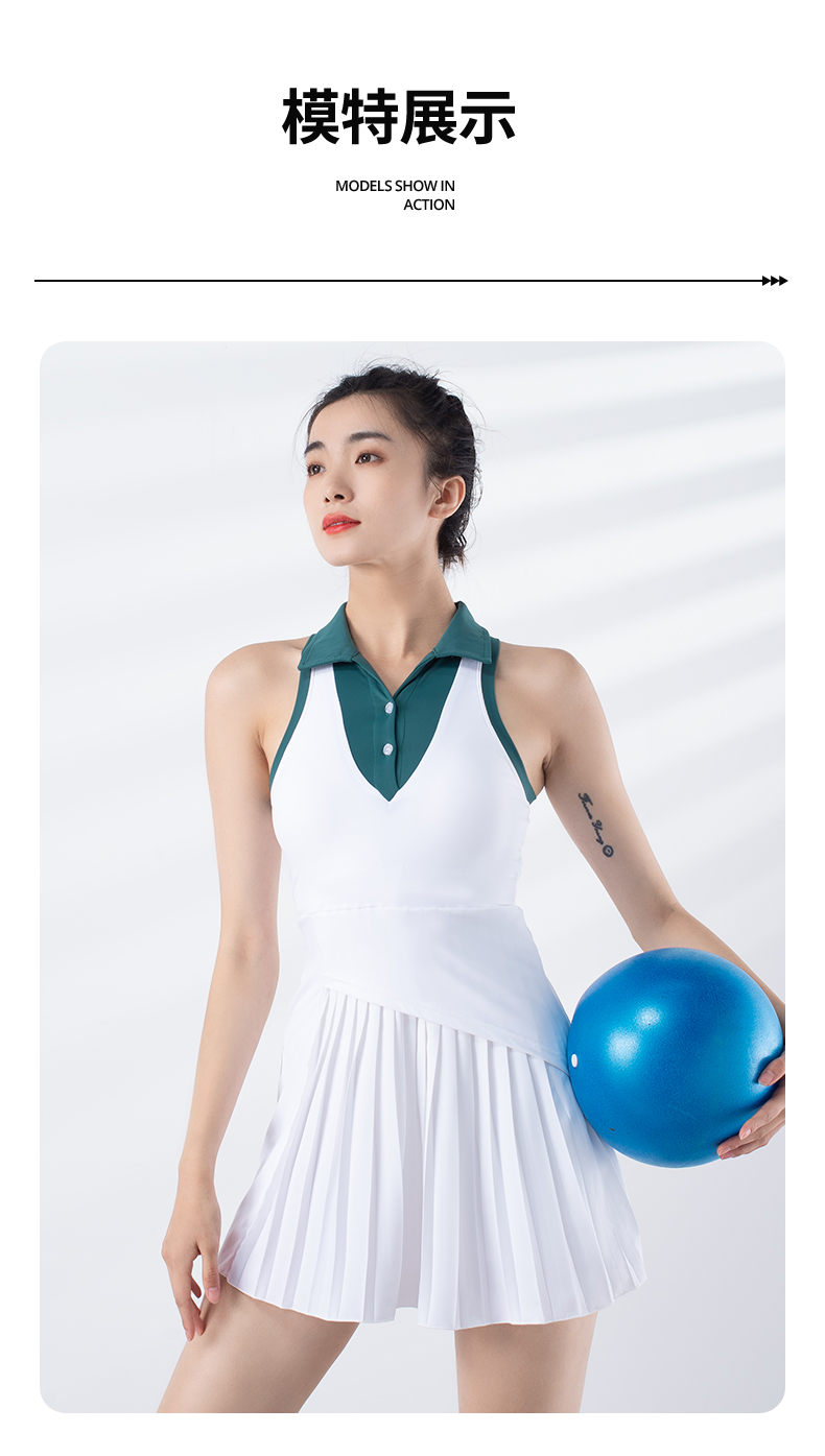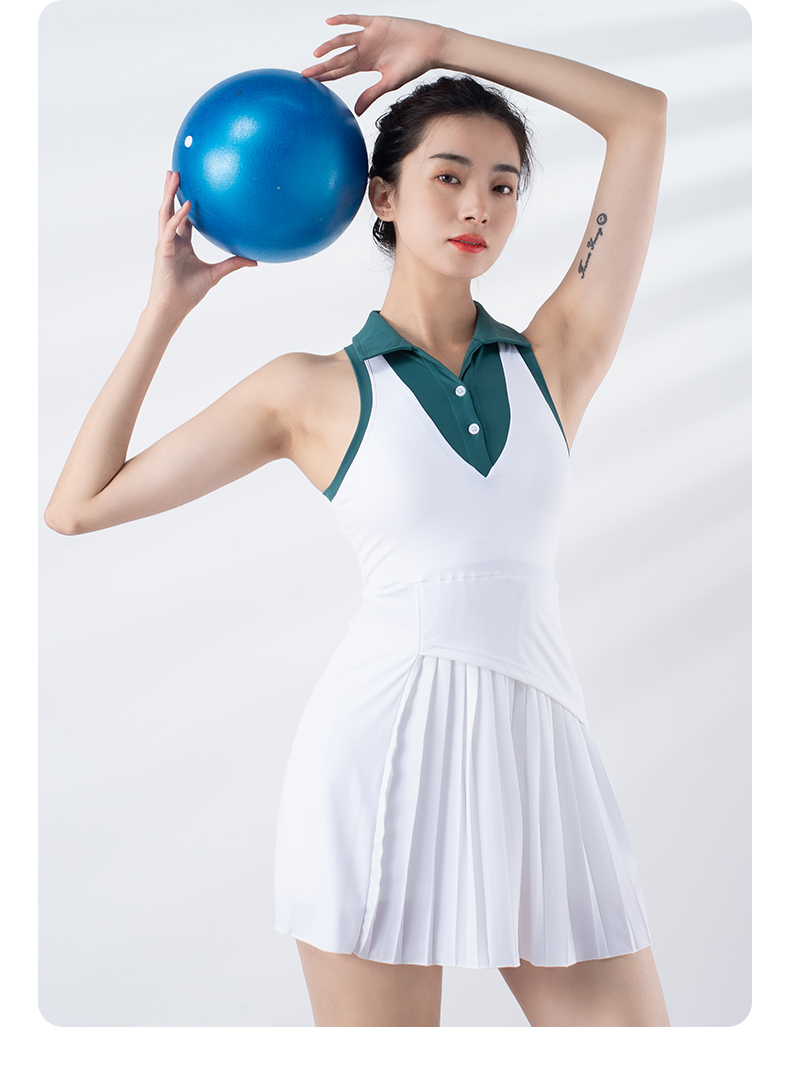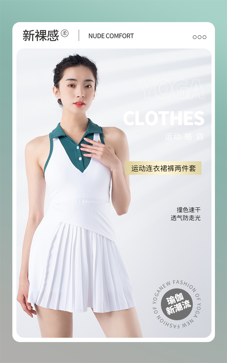 跃牌【洛水之神系列】撞色速干透气防走光运动连衣裙裤两件套307