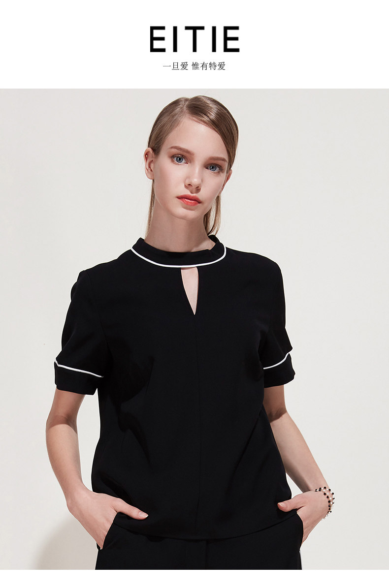 EITIE爱特爱春夏季女装时尚OL简约小上衣圆领T恤衫5913617