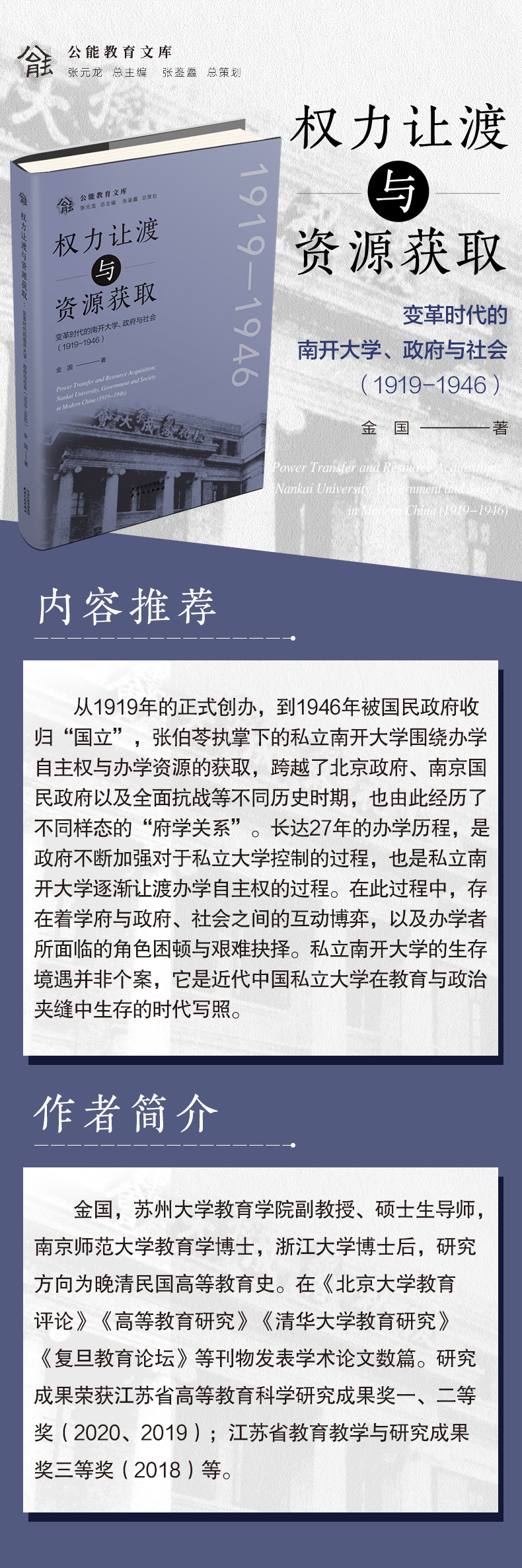 权力让渡与资源获取 : 变革时代的南开大学、政府 与社会 : 1919-1946
