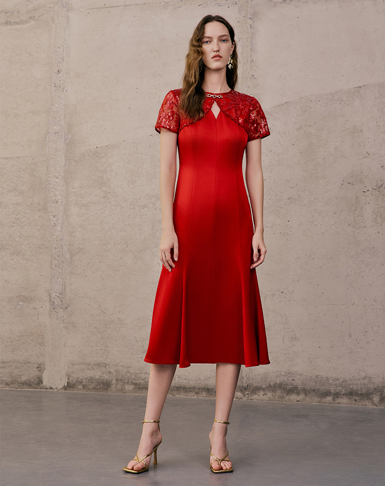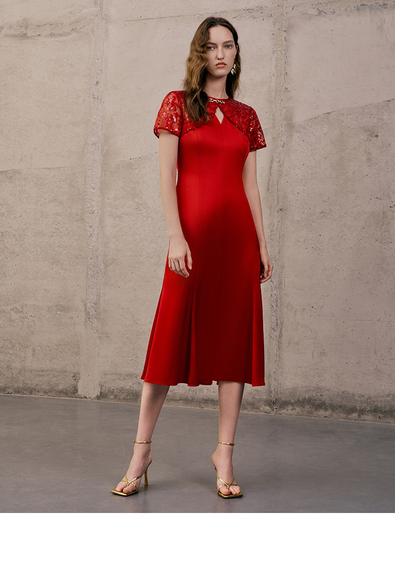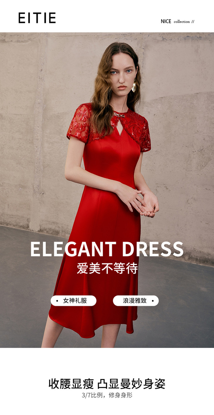 EITIE爱特爱夏季新款气质镂空精致A版显瘦礼服连衣裙7477101