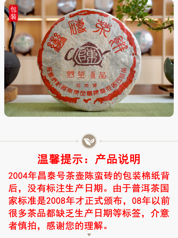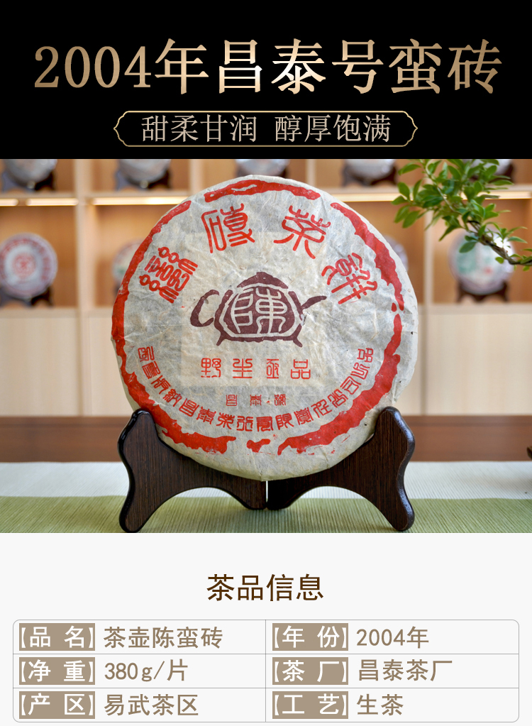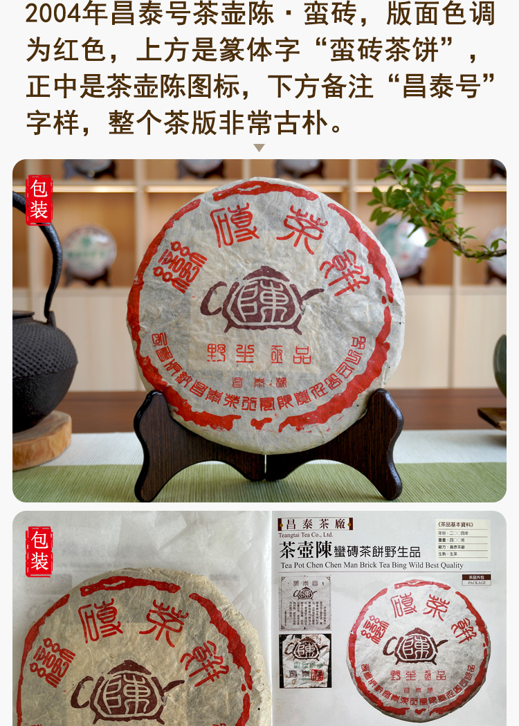 2004年昌泰茶壶陈蛮砖野生茶普洱老生茶干仓真品一片400克经典茶