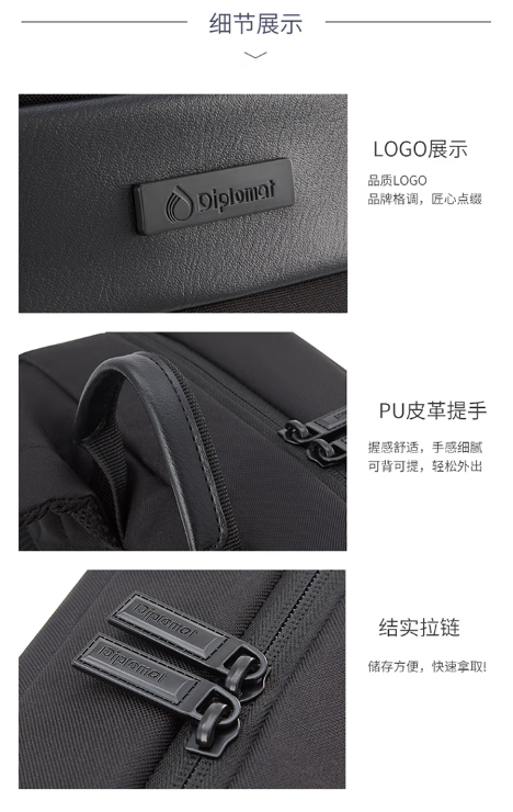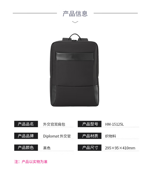 Diplomat外交官 商务休闲简约商务双肩背包 HM-15125L黑色