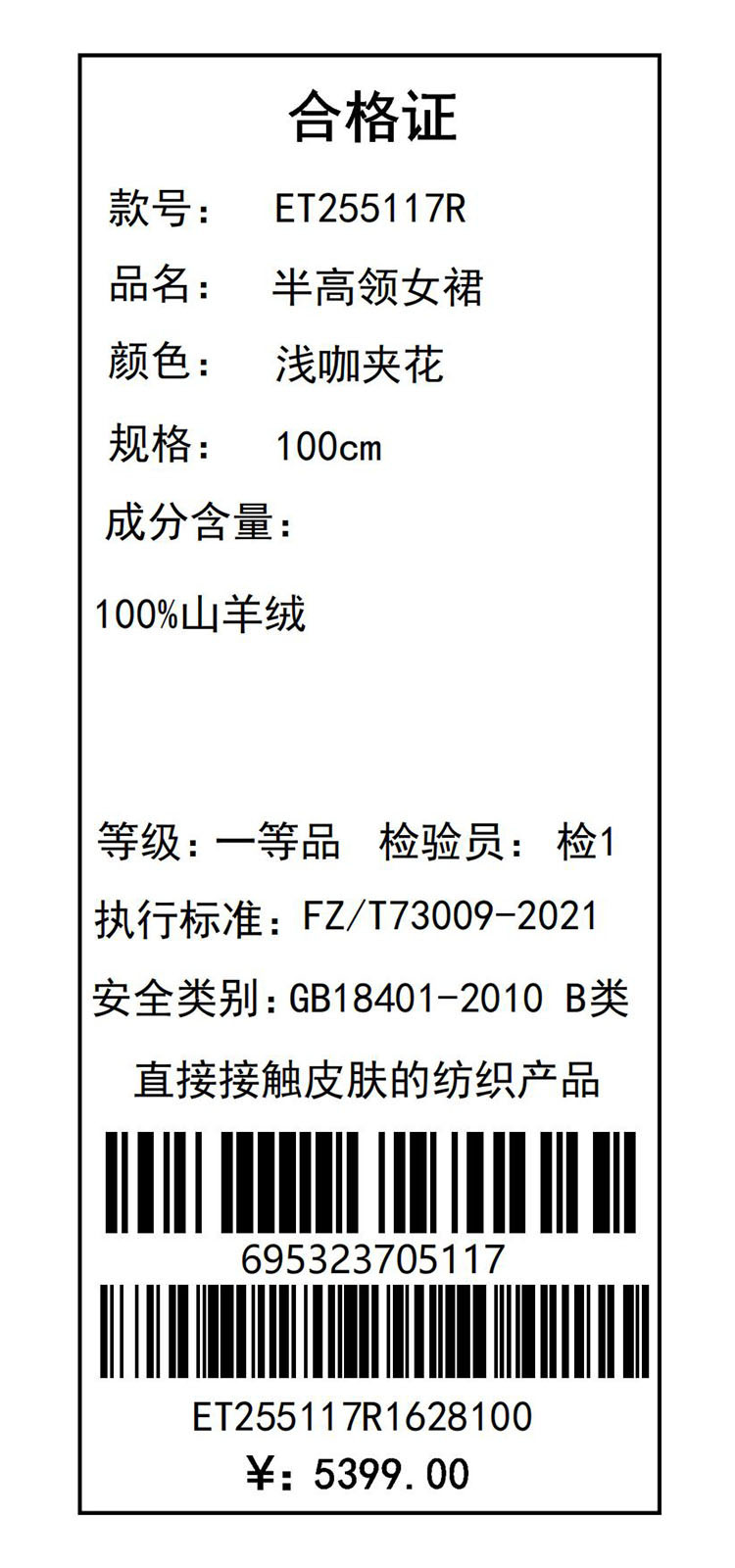 【咕咕同款】PALUOPO/PL半高领女裙(不配腰带)ET255117R/约重425g帕罗
