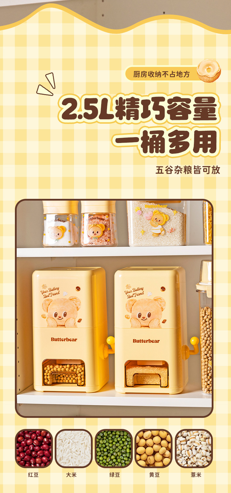 【摩登主妇&黄油小熊】摇杆米桶家用米箱储米密封桶防虫防潮米缸