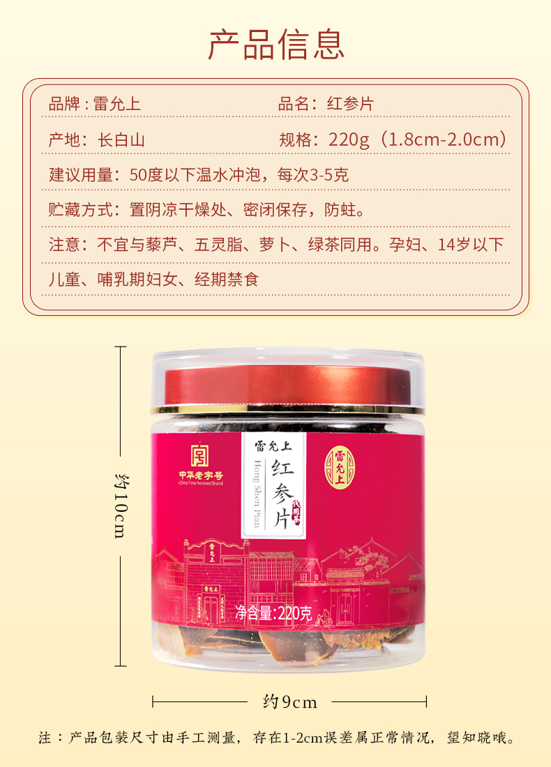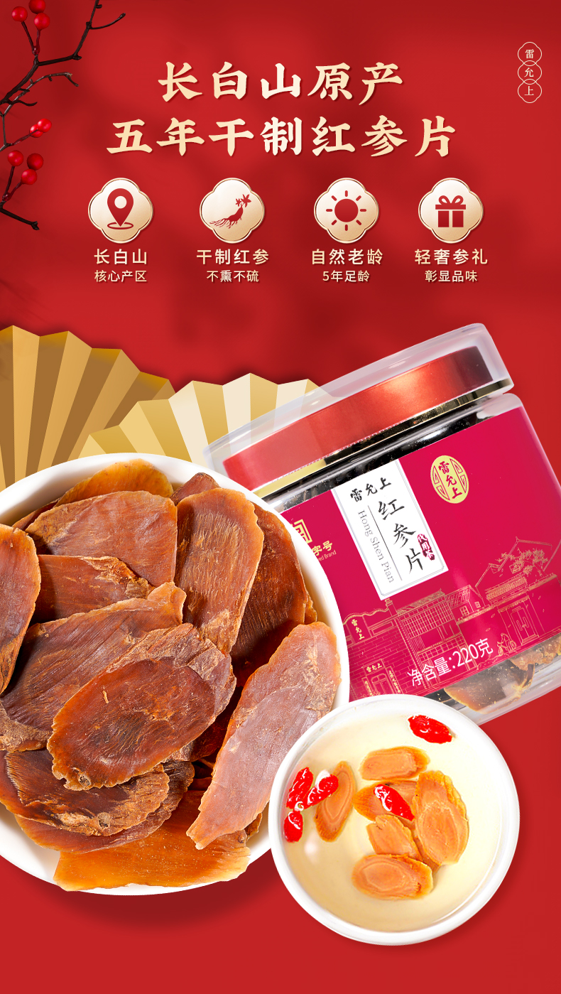 雷允上直营 | 长白山红参片100g/瓶 瓶装自用 女性滋养