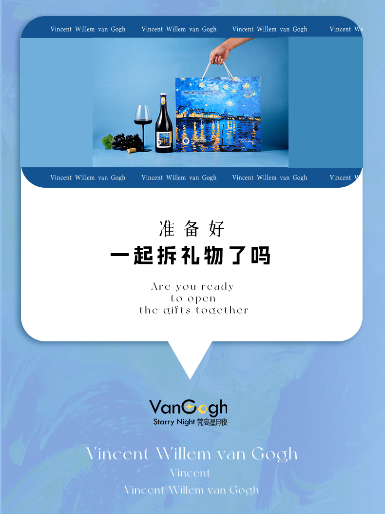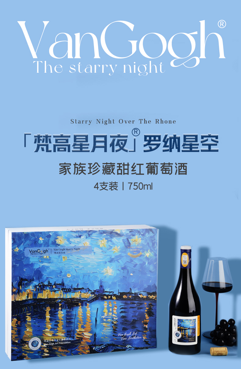 【法国原装进口 梵高艺术基金会 正版授权】梵高星月夜白葡萄酒礼盒/红葡萄酒礼盒(750ML*4瓶)
