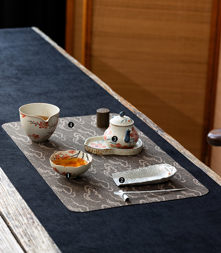 茶香记焦糖内外绘茶杯莲瓣花口梅花戏鱼80ml德化手绘陶瓷主人杯