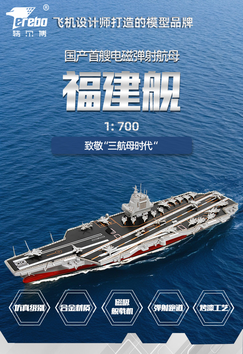【电磁弹射 主体锌合金】特尔博1:700合金福建号航母模型航空母舰003号