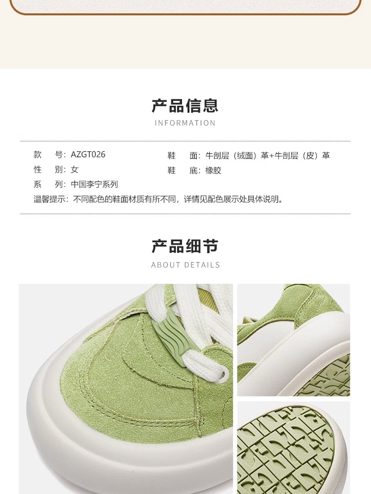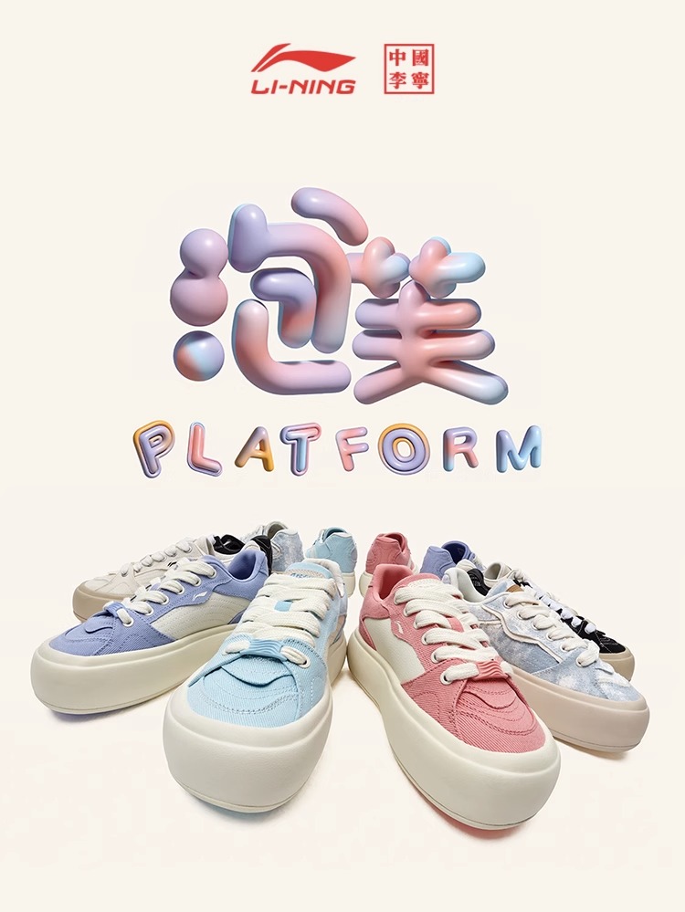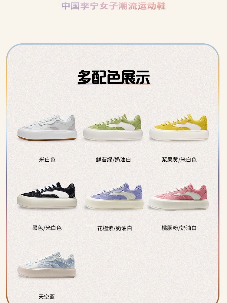 【37/38/39断码】李宁泡芙Platform女鞋休闲鞋2023新款复古板鞋运动鞋AZGT026【库存有限,如无货将做退款,介意慎拍!】