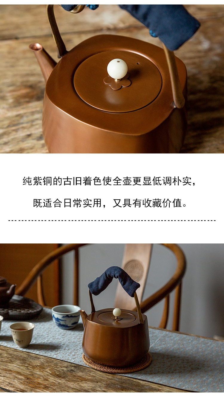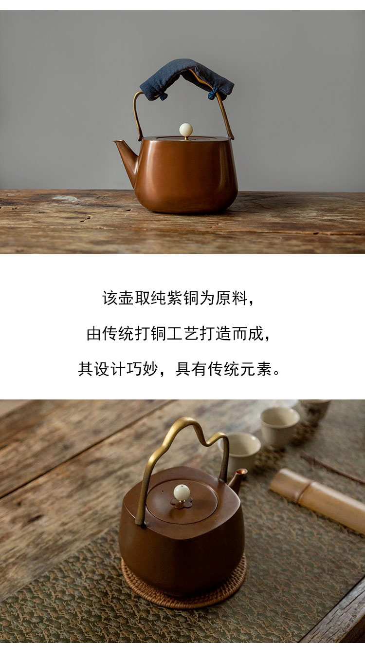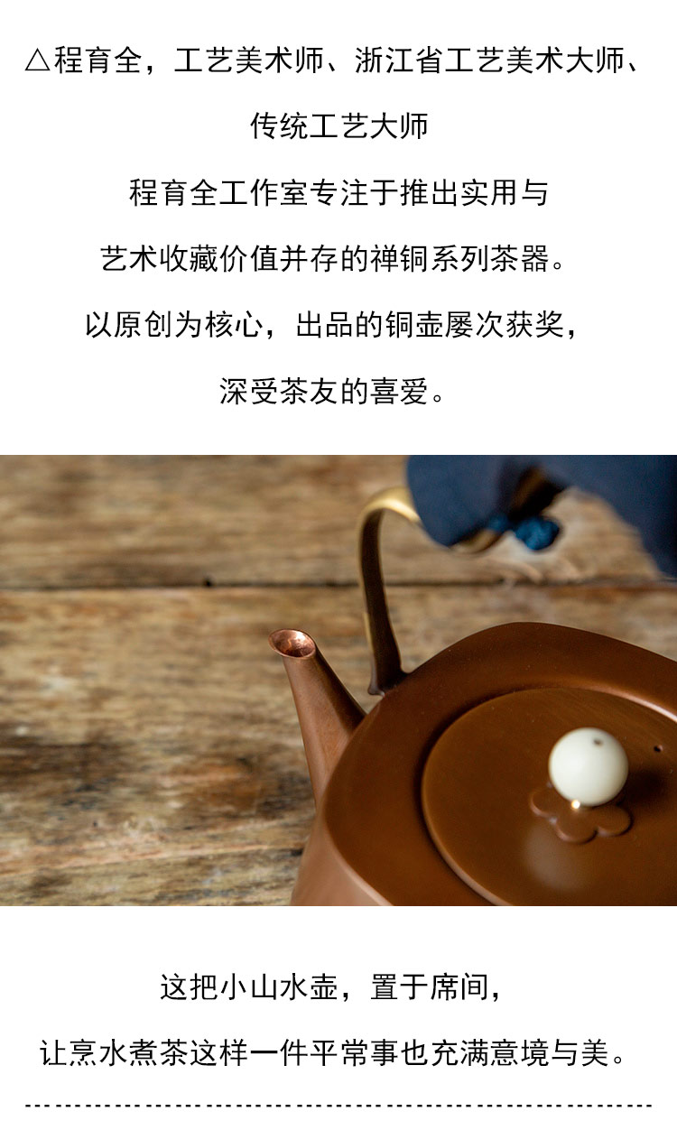 茶香记 神雕铜艺 铜壶 二代水煮色 小山水壶 紫铜手打 山水禅意